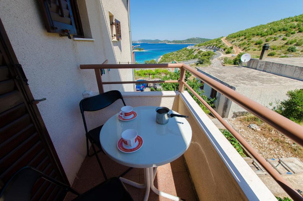 Studio d'environ 20m2 avec un balcon donnant sur le côté de l'immeuble.