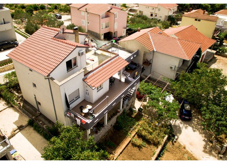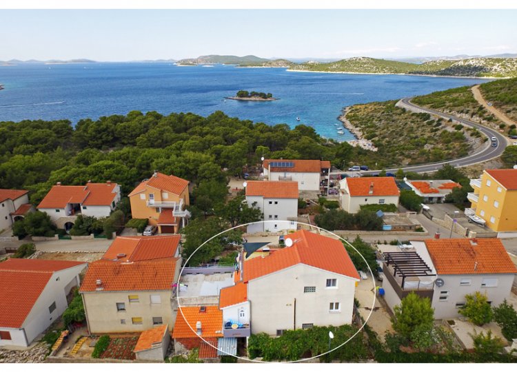 Appartement pour 4 à 6 personnes avec une grande terrasse et une belle vue sur la mer et les îles environnantes. La plage, la promenade et la piste cyclable sont à seulement 150 m. Climatisation, TV SAT, wi-fi. 2 X unités sanitaires.