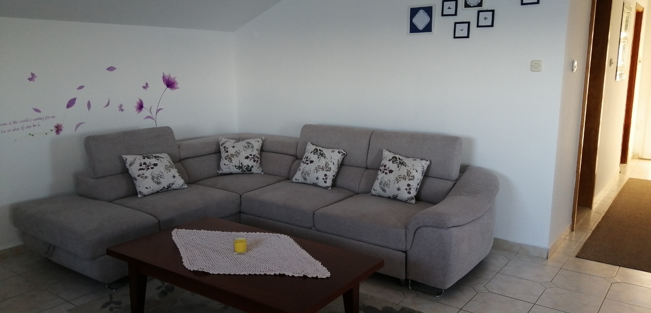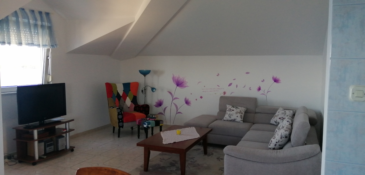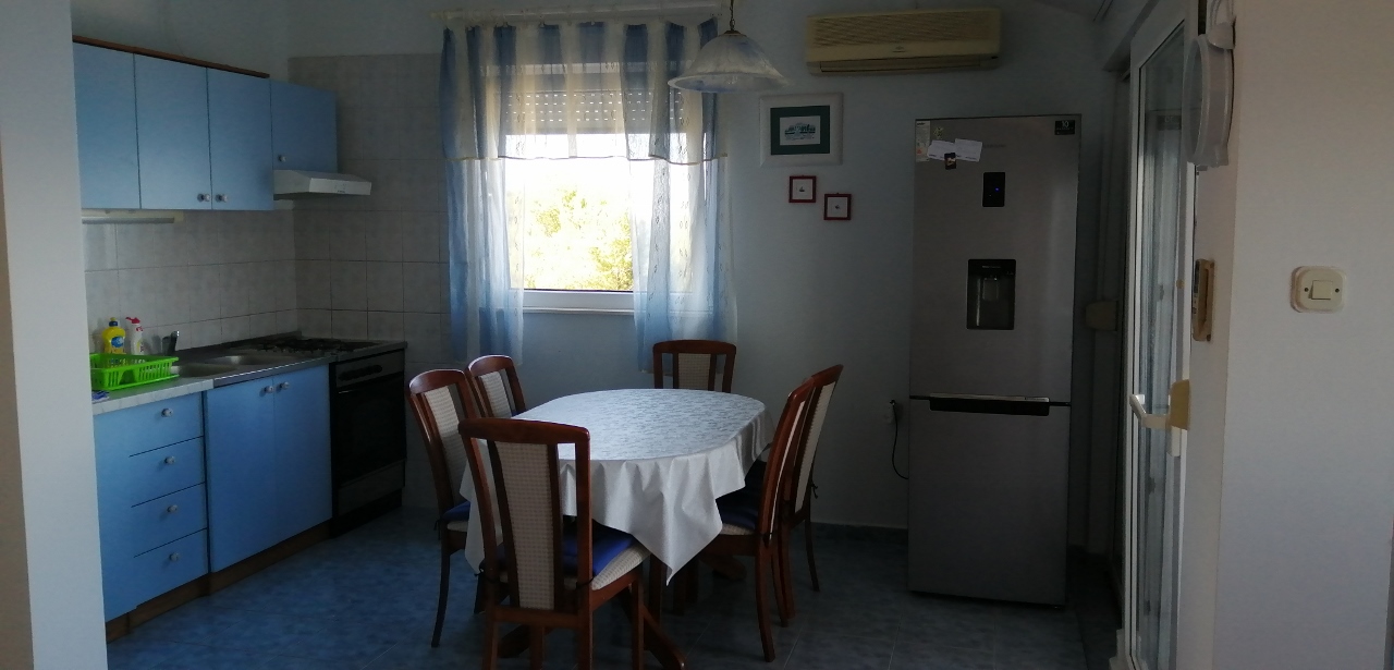 Deux chambres à coucher, une avec un lit double et l'autre avec deux lits simples; Salon avec deux canapés-lits, cuisine avec salle à manger, salle de bain avec WC, grand balcon, climatisation, TV, Wi-Fi, barbecue en plein air, parking