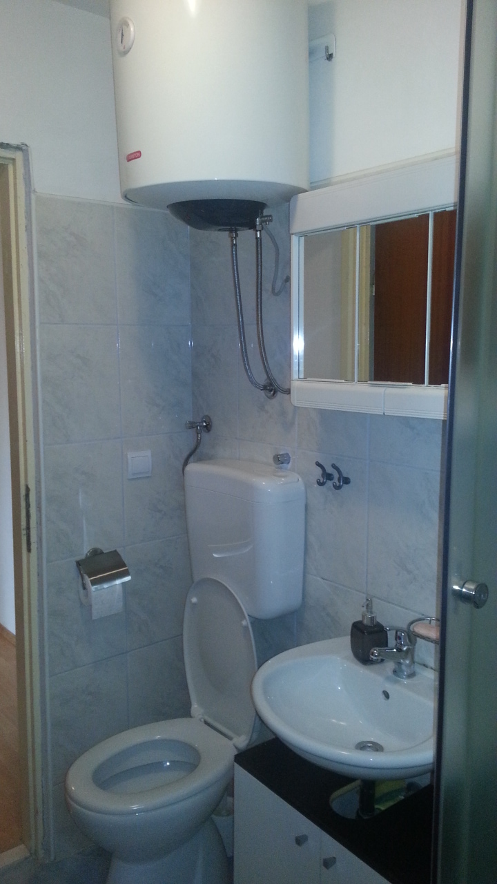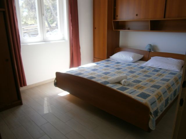 80m²; Tri odvojene spavaće sobe s bračnim krevetima, kuhinja s blagovaonicom i dnevni boravak s kaučem na razvlačenje, kupaonica s WC-om, jedan zaseban WC, terasa, klima uređaj, TV, wi-fi, parkirno mjesto.