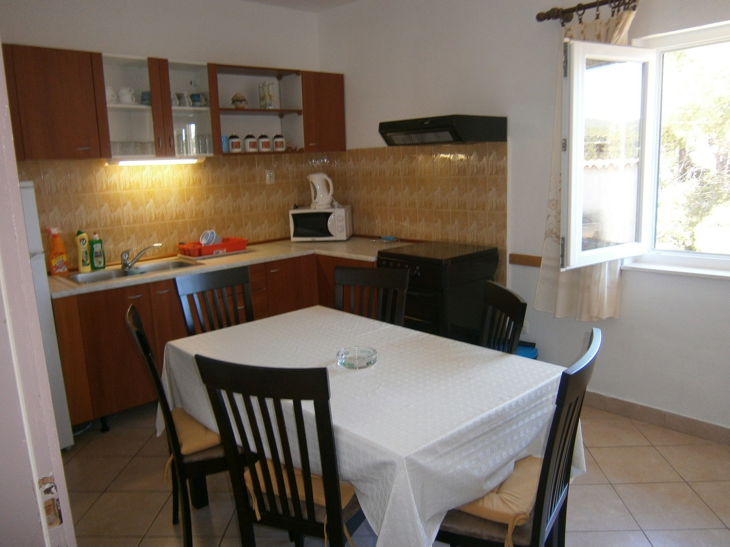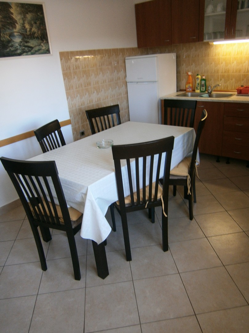 100m²; Četiri spavaće sobe s bračnim krevetima, jedna s dodatnim krevetom za jednu osobu; Kuhinja s blagovaonicom i dnevnim boravkom s kaučem na razvlačenje, dvije kupaonice s WC-om, balkon s pogledom na Primoüten i more, klima uređaj, TV, bežični internet, vanjski roštilj, parking; cca 400 m od mora, plaže i centra Primoštena.