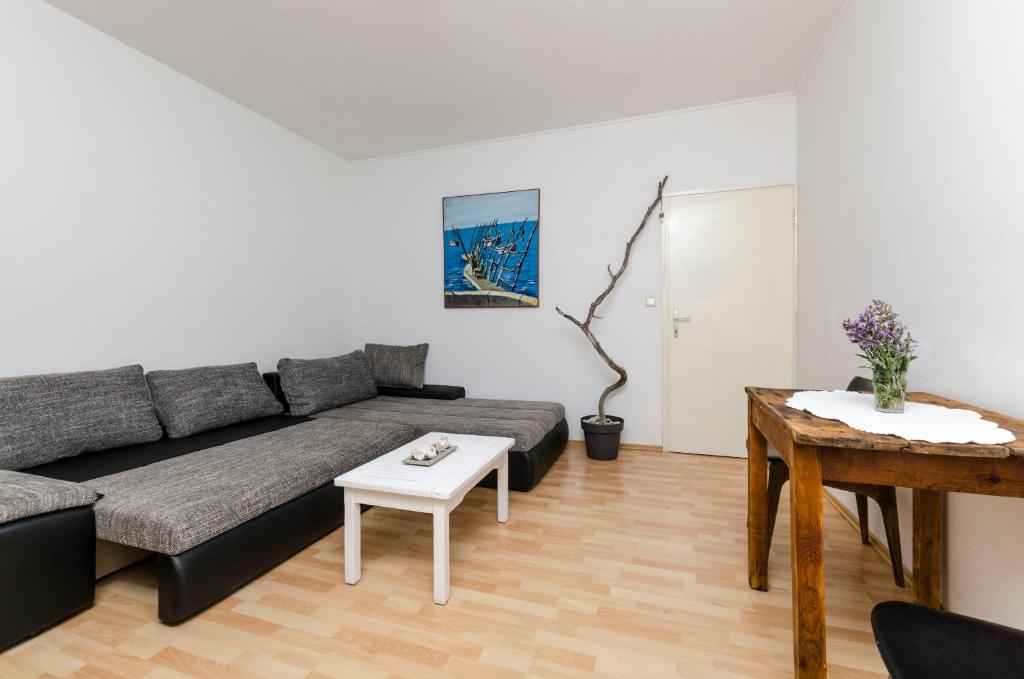 AP1 1/2+2 Tip: Apartman , Broj kreveta: 1 , dodatni ležajevi: 1 , spavaće sobe: 1 Spavaća soba: 2 kreveta za 1 osobu Dnevni boravak: 1 kauč na razvlačenje Apartman s terasom za 2 do 4 osobe Pregledaj