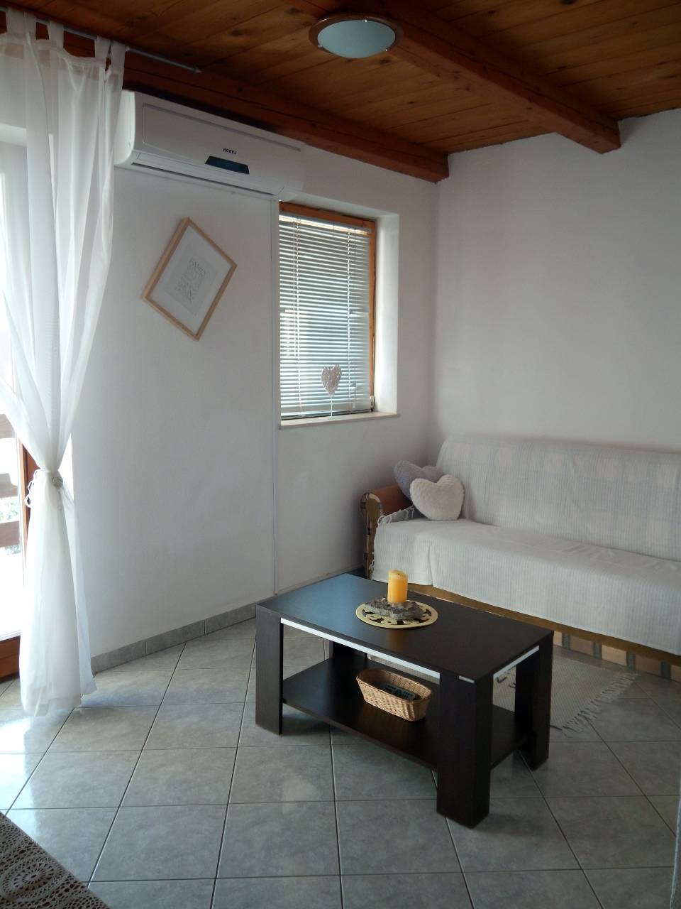 Apartman je udaljen cca 200 m od mora i cca 300 m od centra Primoštena, dvije odvojene spavaće sobe s bračnim krevtima, kuhinja, dodatni ležaj u dnevnom boravku za 1 osobu, kupaonica s WC-om, balkon, klima, TV, Wi-Fi, parking