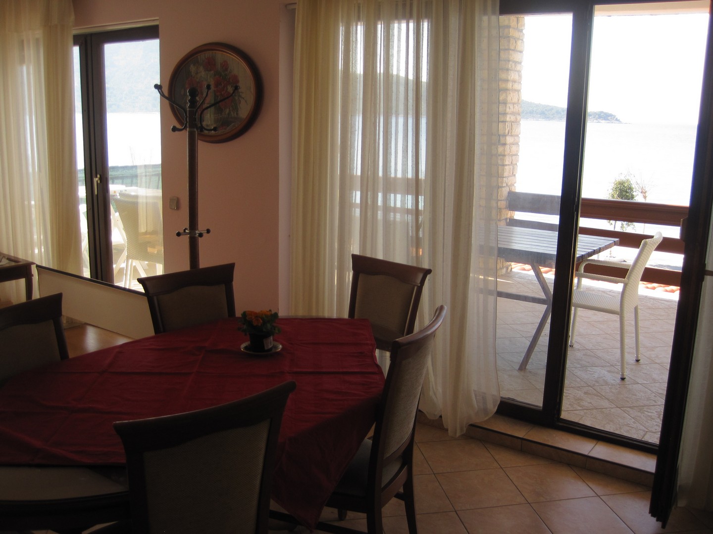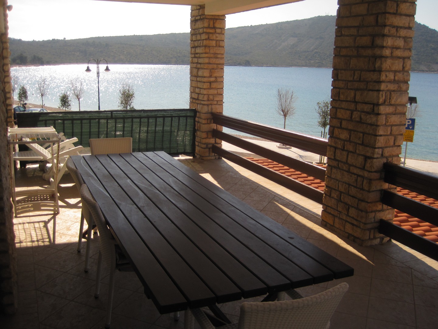 10 m od mora i plaže, velika terasa sa pogledom na more i na Primošten, kuhinja, dnevni boravak s bračnim krevetom, soba s krevetom za jednu osobu, kupaonica s WC-om, klima, Sat-TV, Wi-Fi, prvi kat, parking