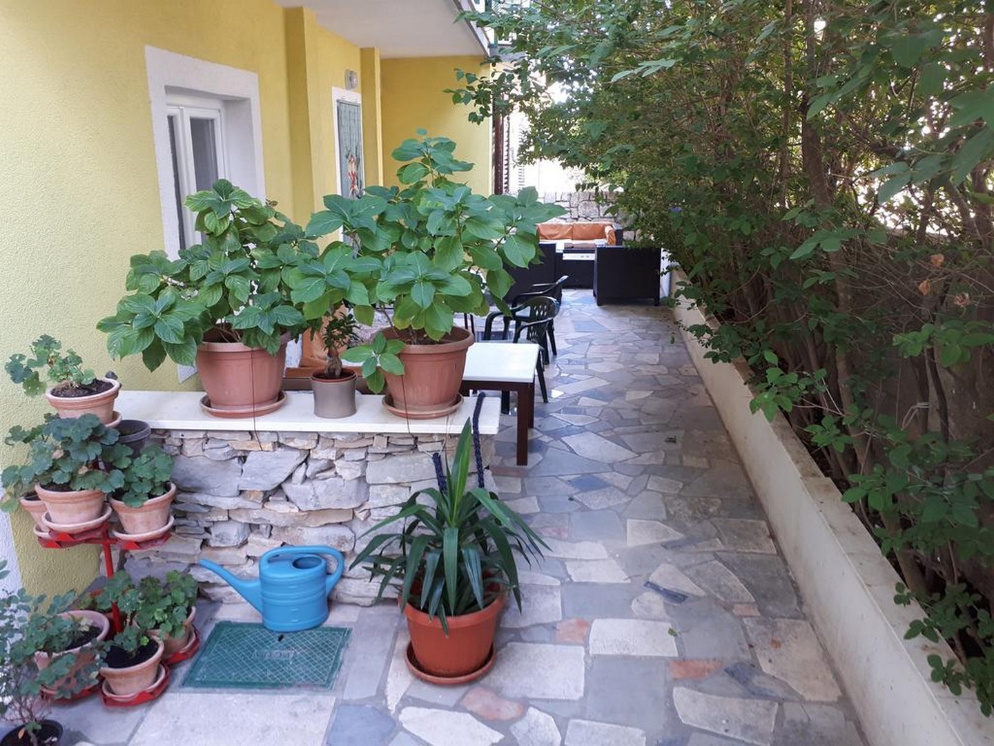 Apartman s terasom cca. 200 m od mora i cca. 300 m od centra Primoštena, dvije sobe sa bračnim krevetima, kuhinja, kupaonica s WC-om, klima, Sat-TV, Wi-Fi, prizemlje, parking