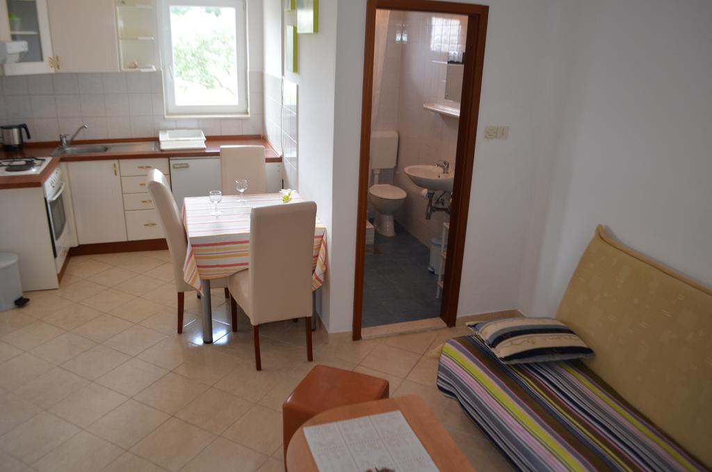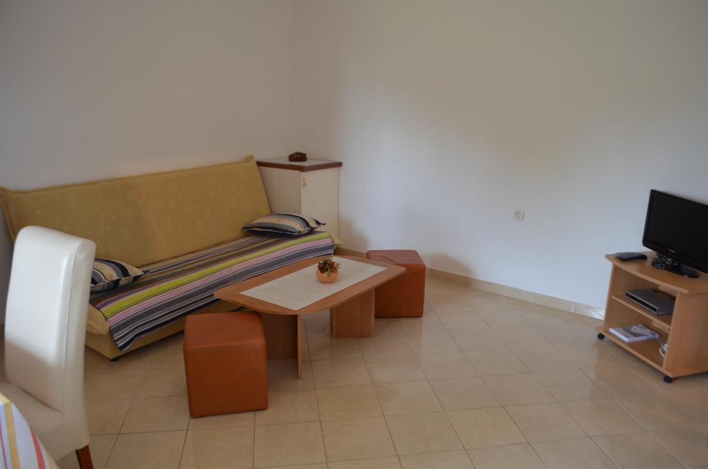 Spavaća soba s bračnim krevetom, dnevni boravak s kaučem na rasklapanje, kuhinja, kupaonica s WC-om, terasa, klima uređaj, Sat-TV, wi-fi, prizemlje, parkirno mjesto.