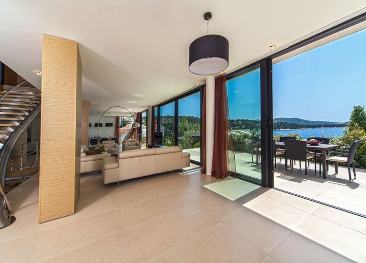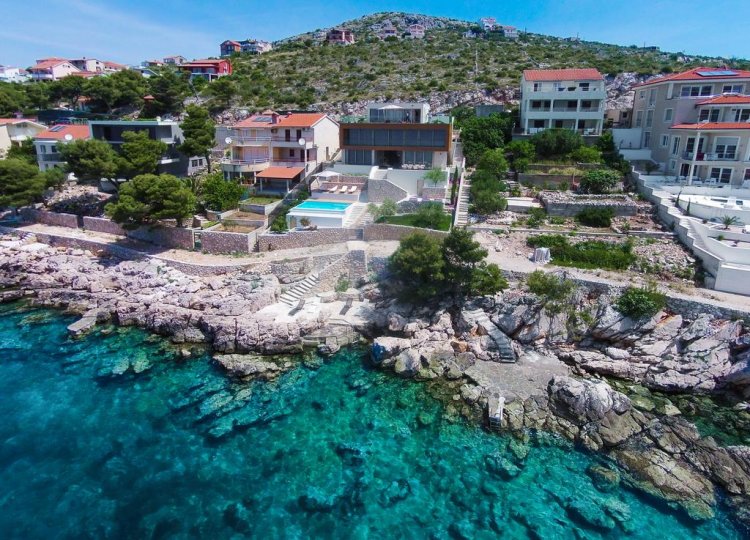 Prekrasna superluksuzna vila uz samo more, na polutoku Čiovo, kraj grada Trogira. Unutarnji i vanjski bazen. Sauna te 6 odvojenih soba sa 8 sanitarnih čvorova.