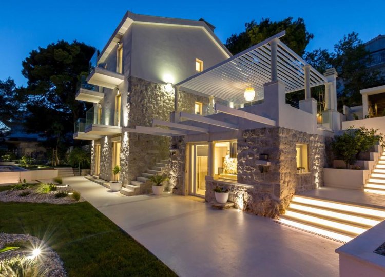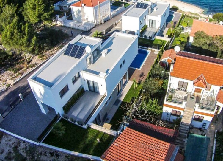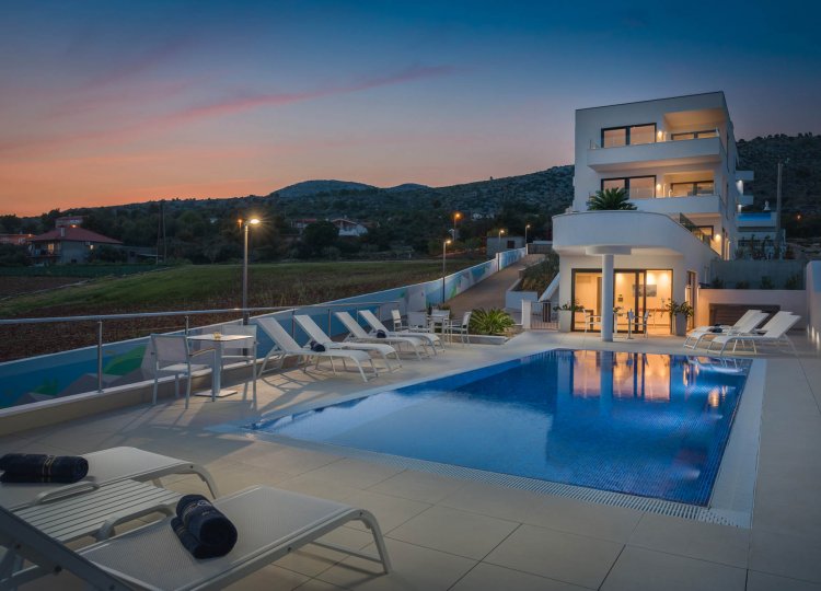 Superluksuzna vila, drugi red od mora, na otoku Čiovo, kraj grada Trogira. Unutarnji i vanjski bazeni, sauna te 6 odvojenih soba i 7 sanitarnih čvorova.