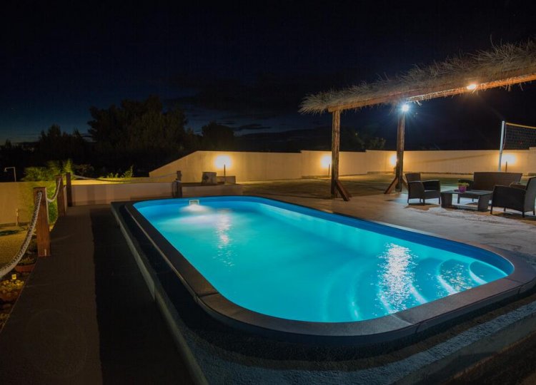 Kuća za odmor sa bazenom u zaleđu Primoštena. Okućnica se pruža na 2500 m2. Igralište za odbojku, noćni bar. Idealno za goste koji žele biti izolirani od turističkih vrevi i gužvi.