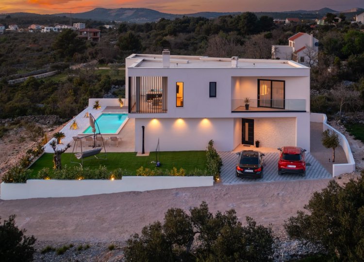 Novosagrađena luksuzna vila, udaljena 2,5 km od Primoštena i mora, pruža idiličnu oazu za odmor sa pogledom na more.