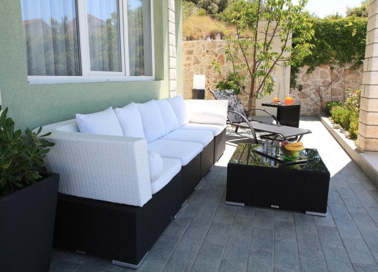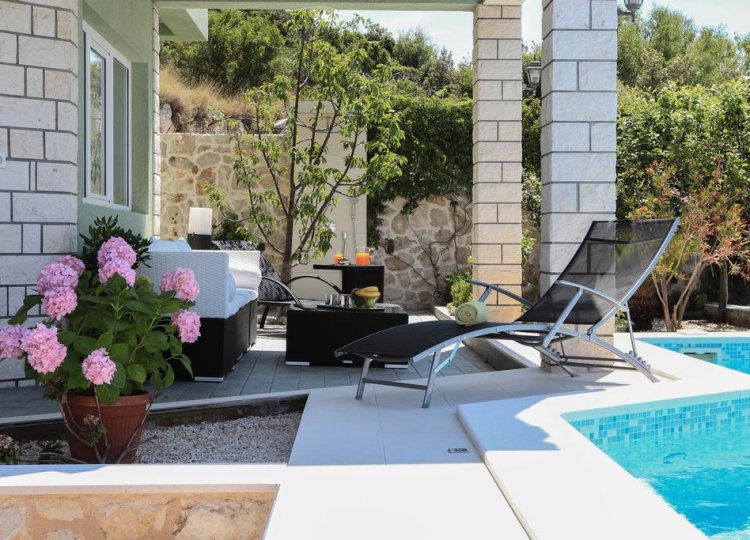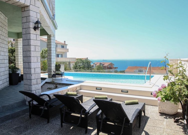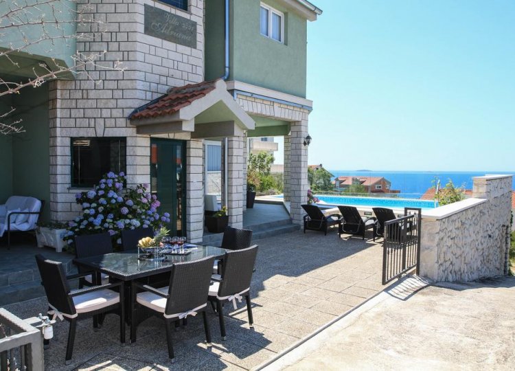 Na više od 280 m2 podijeljenih na 3 etaže s 4 spavaće sobe,ova vila može smjestiti 8+3 osoba. U prizemlju se nalazi dnevni boravak s izlazom na terasu koja pruža predivan pogledom na more. Na prvoj etaži su 3 spavaće sobe. Jedna je s kupaonicom te ima galeriju s 3 dodatna kreveta za jednu osobu. Dvije ostale sobe su dvokrevetne s kupaonicom. Na drugoj etaži se također nalazi dvokrevetna soba s kupaonicom. Vila ima klima uređaje u svakoj spavaćoj sobi i WiFI Internet. Dvije potpuno opremljene kuhinje s blagovaonicom u prizemlju i na prvom katu. Bazen od 26m² je grijani tako da je temperatura vode uvijek savršena. Također, gosti mogu tijekom boravka na plaži koristiti kućicu od 25m² koja se nalazi na plaži, kako bi ostavili svoje stvari ili se malo sakrili od sunca.