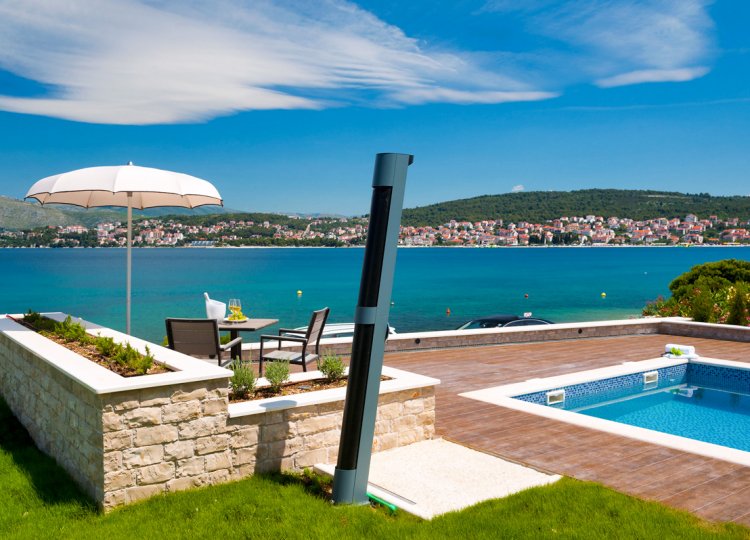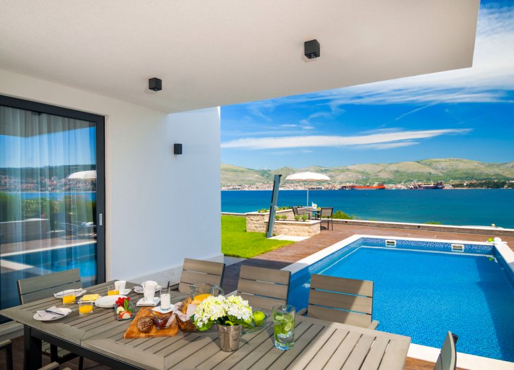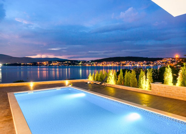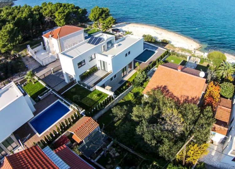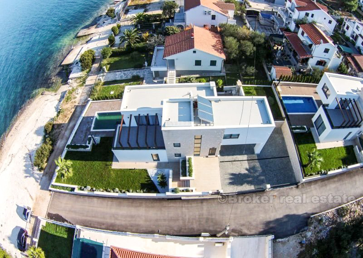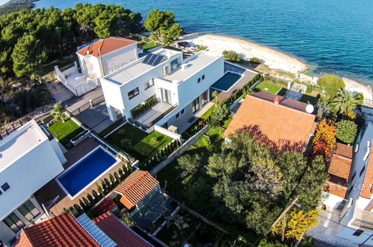 Prekrasna superluksuzna villa od 5 zvjezdica sa unutarnjim i vanjskim bazenom. Smještena uz samo more u mjestu Okrug Gornji na otoku Čiovu, udaljena