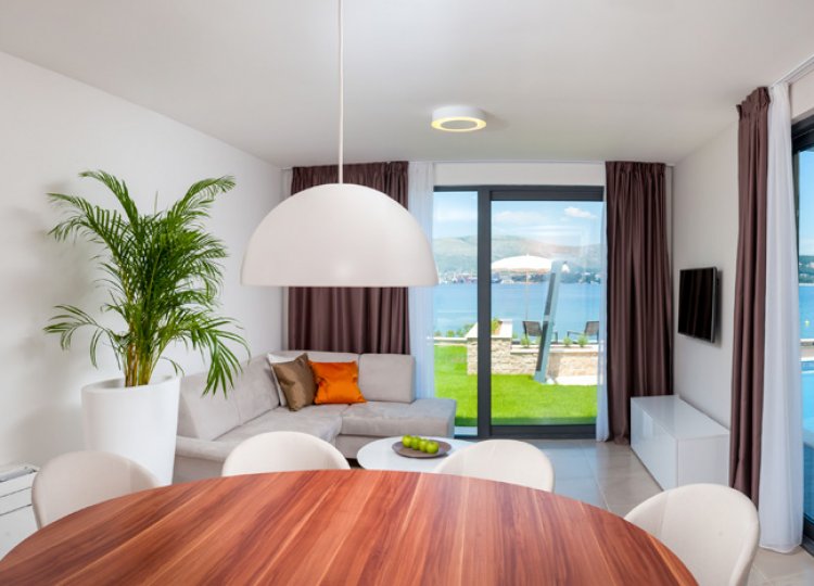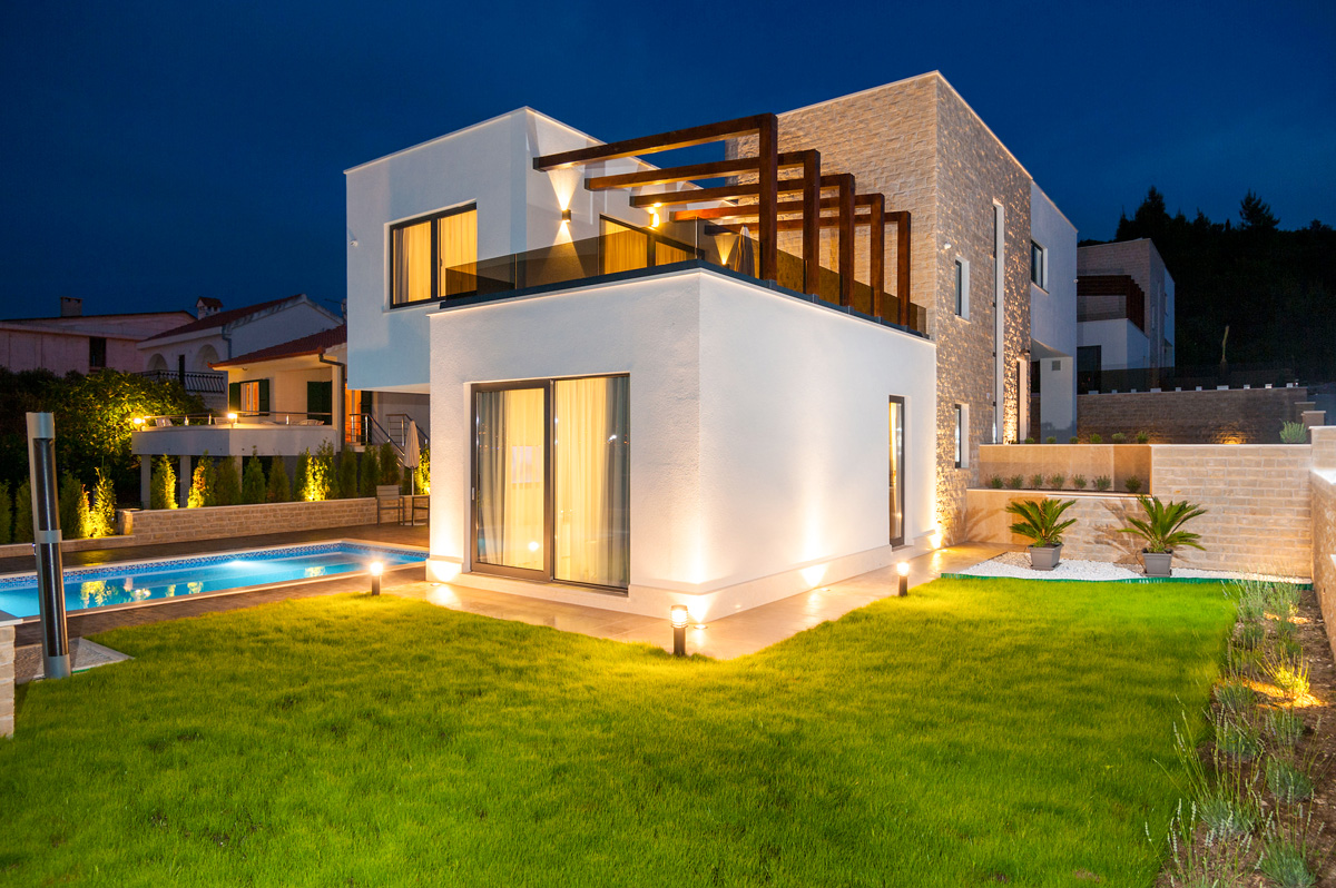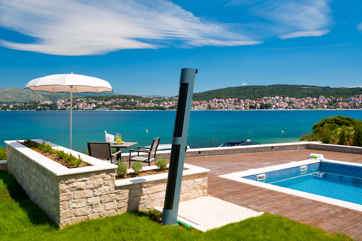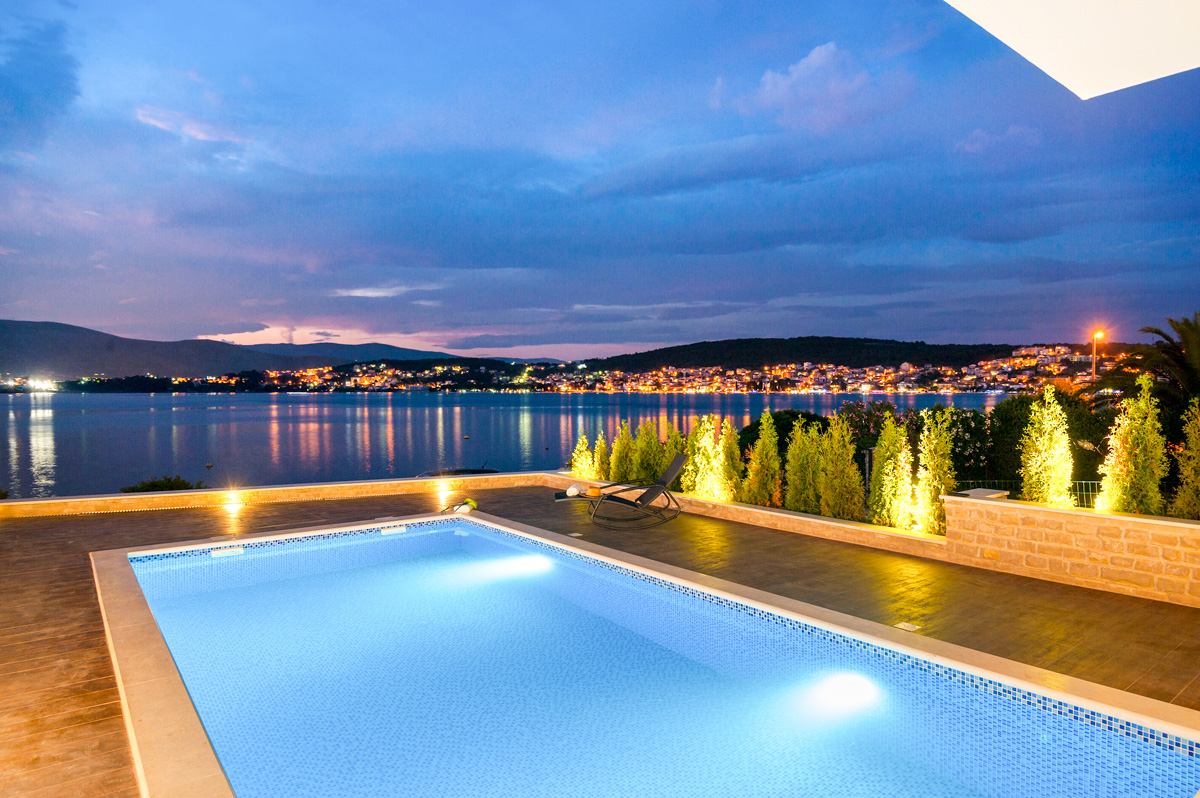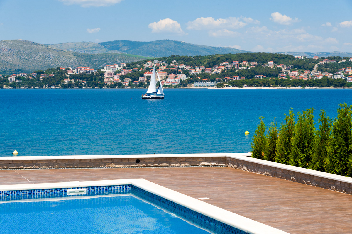 Prekrasna superluksuzna villa od 5 zvjezdica sa unutarnjim i vanjskim bazenom. Smještena uz samo more u mjestu Okrug Gornji na otoku Čiovu, udaljena