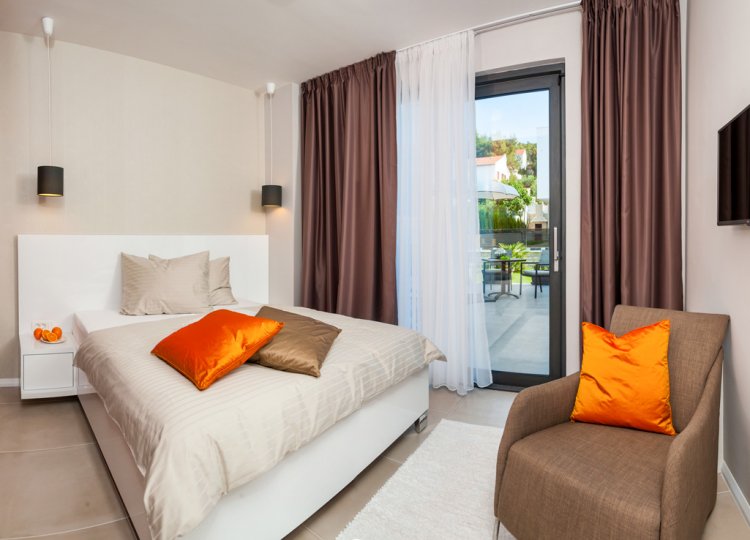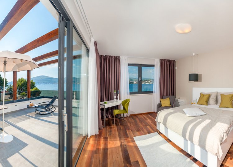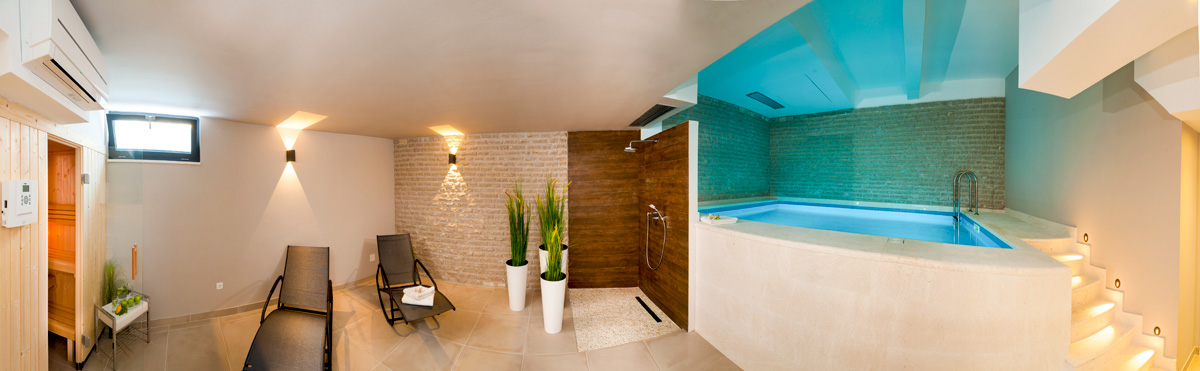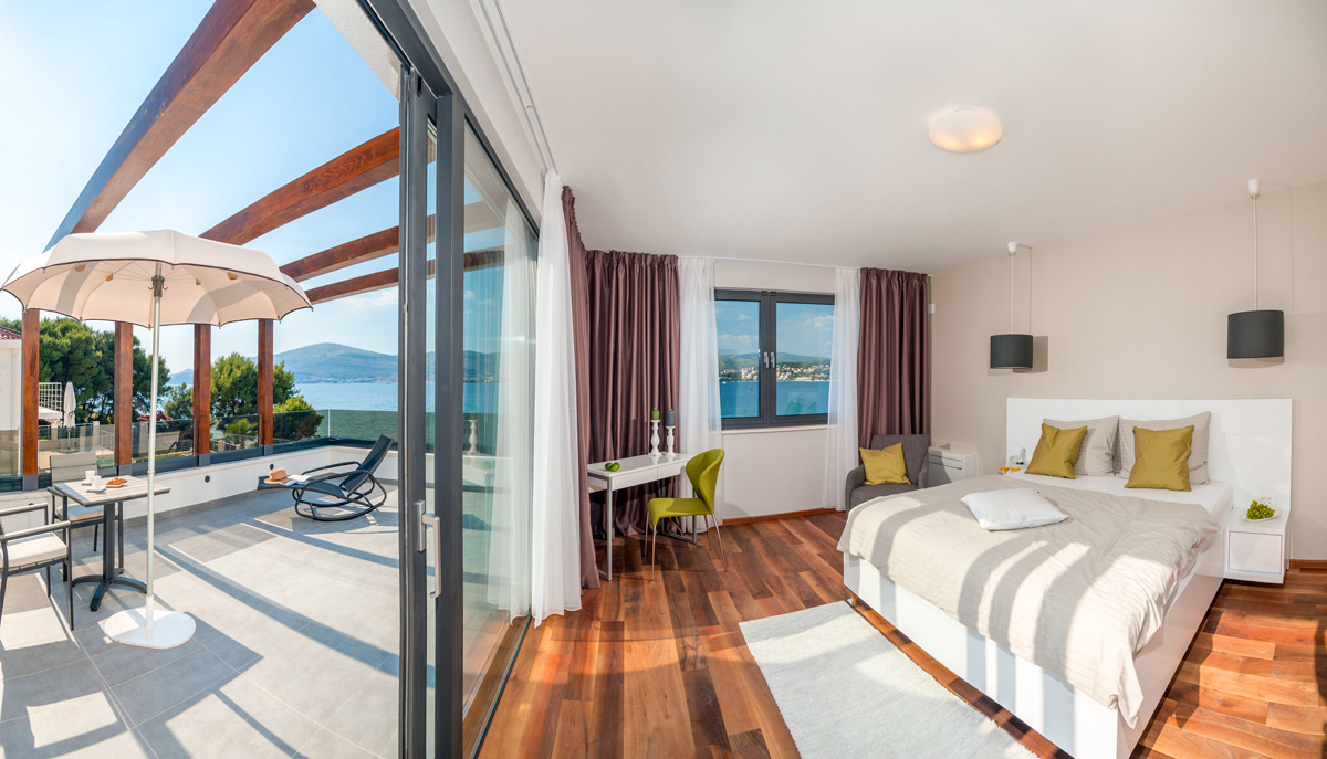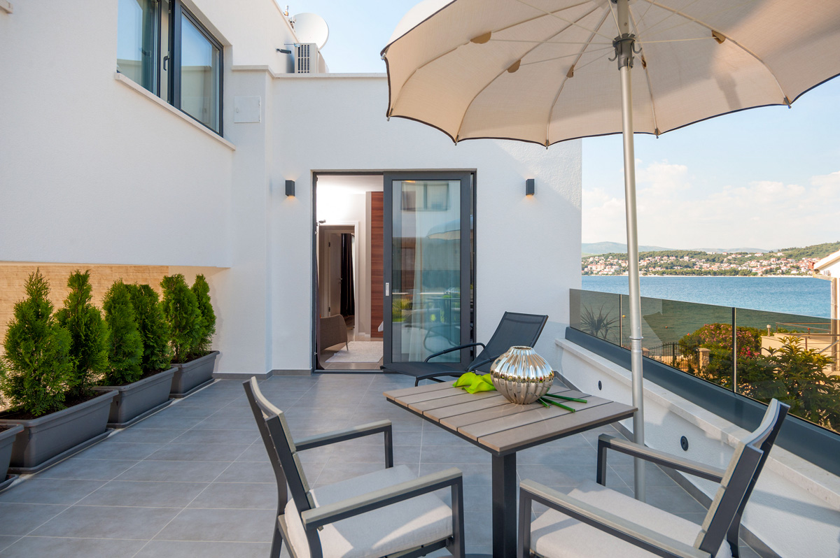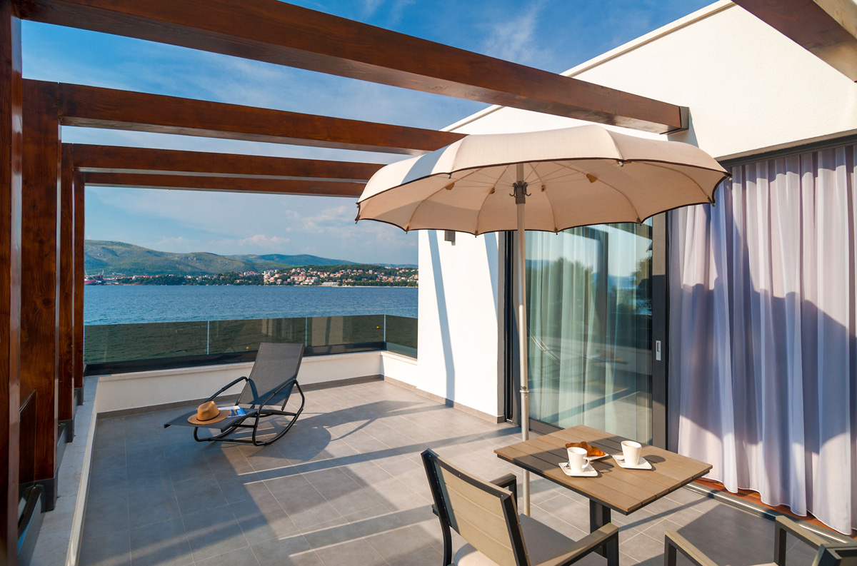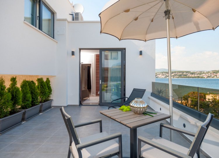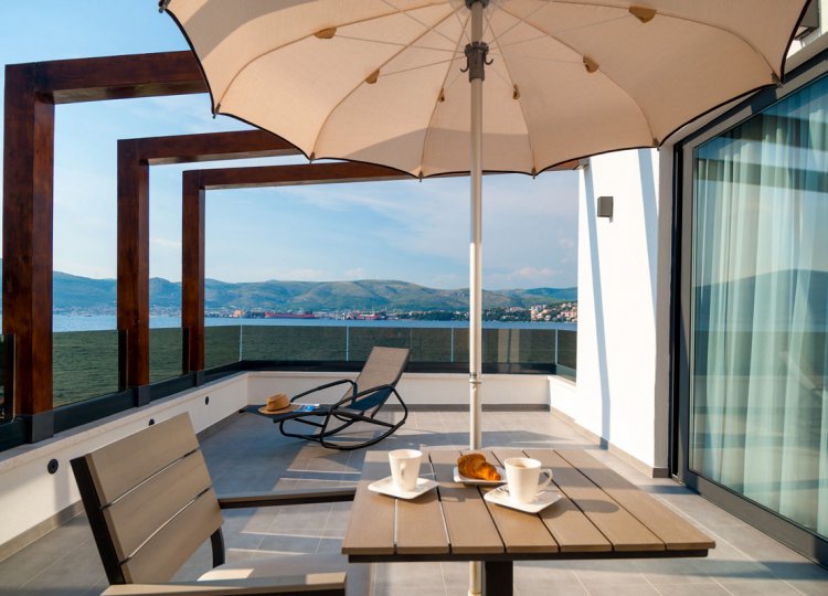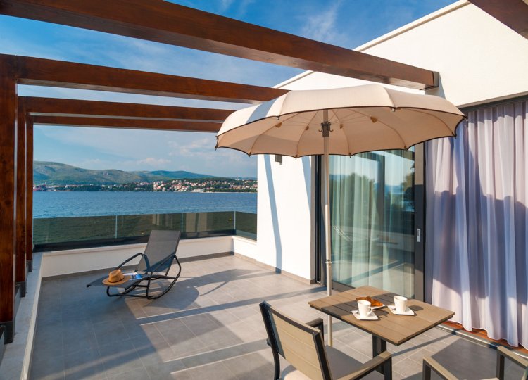 Gosti su mogu opustiti i u sauni te mini fitness sobi. Sa terase se pruža prekrasan pogled na more i na grad Trogir.