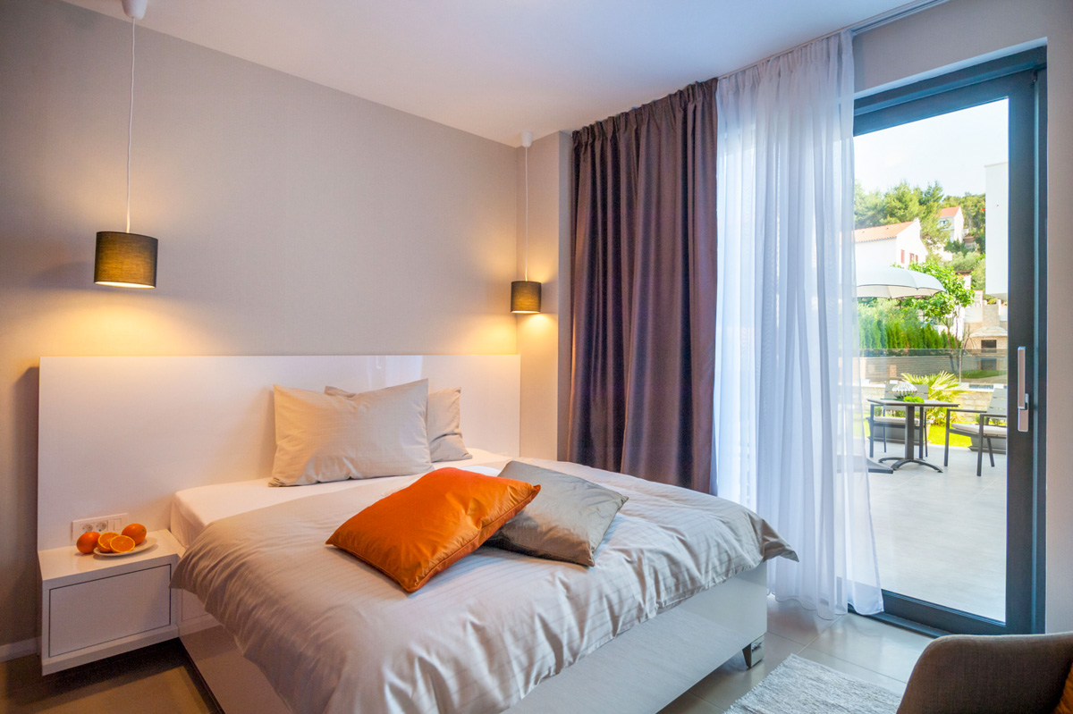 cca 5 km od grada Trogira (UNESCO). Villa može primiti do 11 osoba i posjeduje 6 odvojenih spavaćih soba i 8 sanitarnih čvorova.