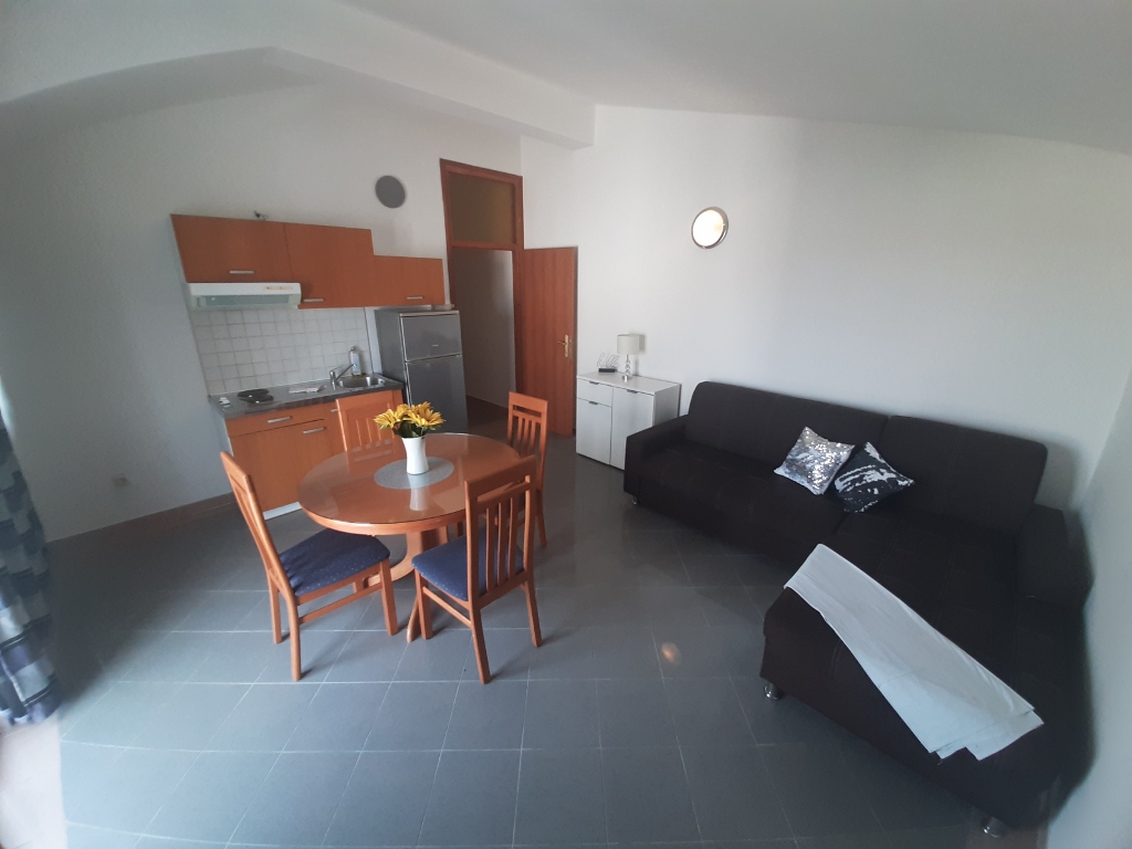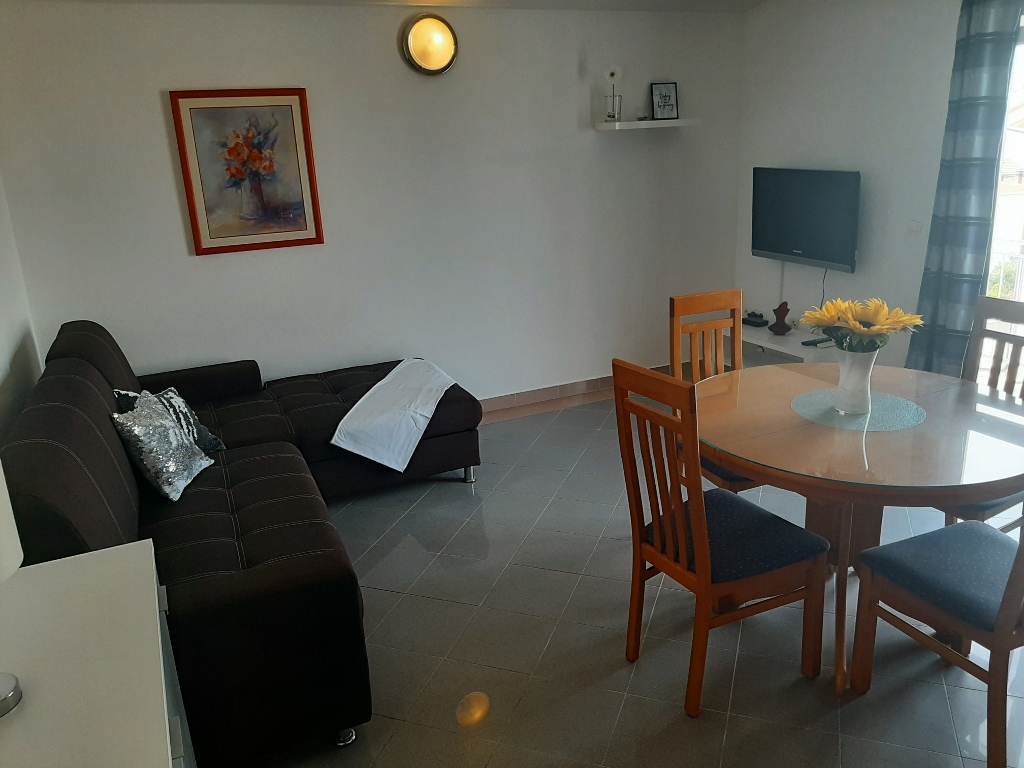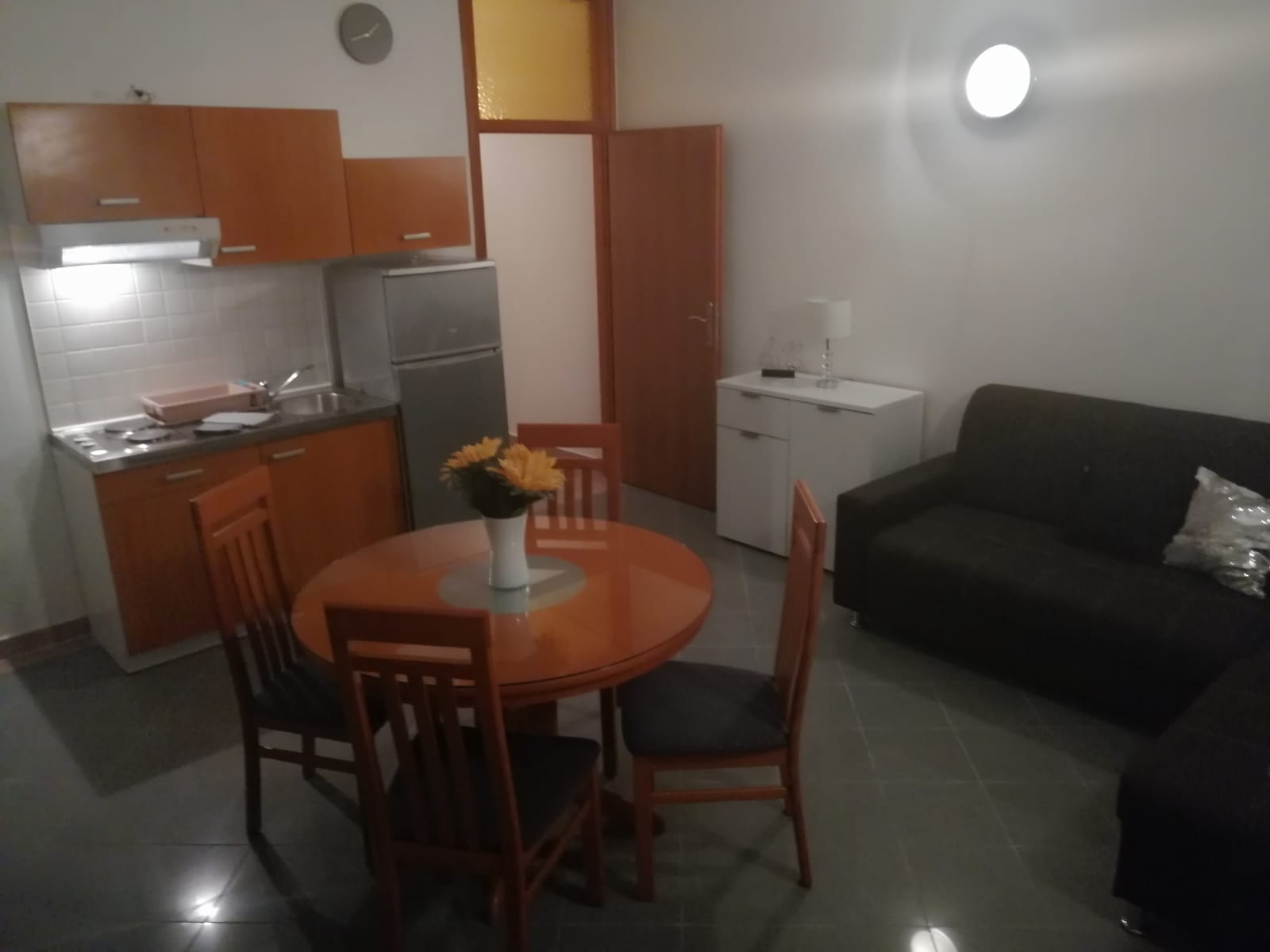 Camera da letto con due letti singoli, soggiorno con divano letto, cucina, bagno con wc, balcone, TV, WiFi, parcheggio