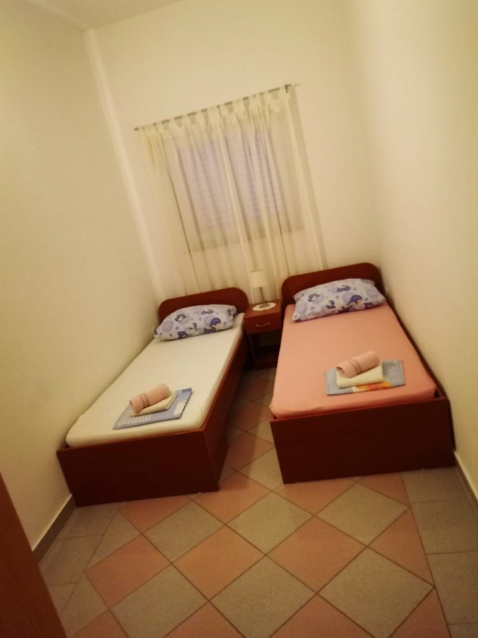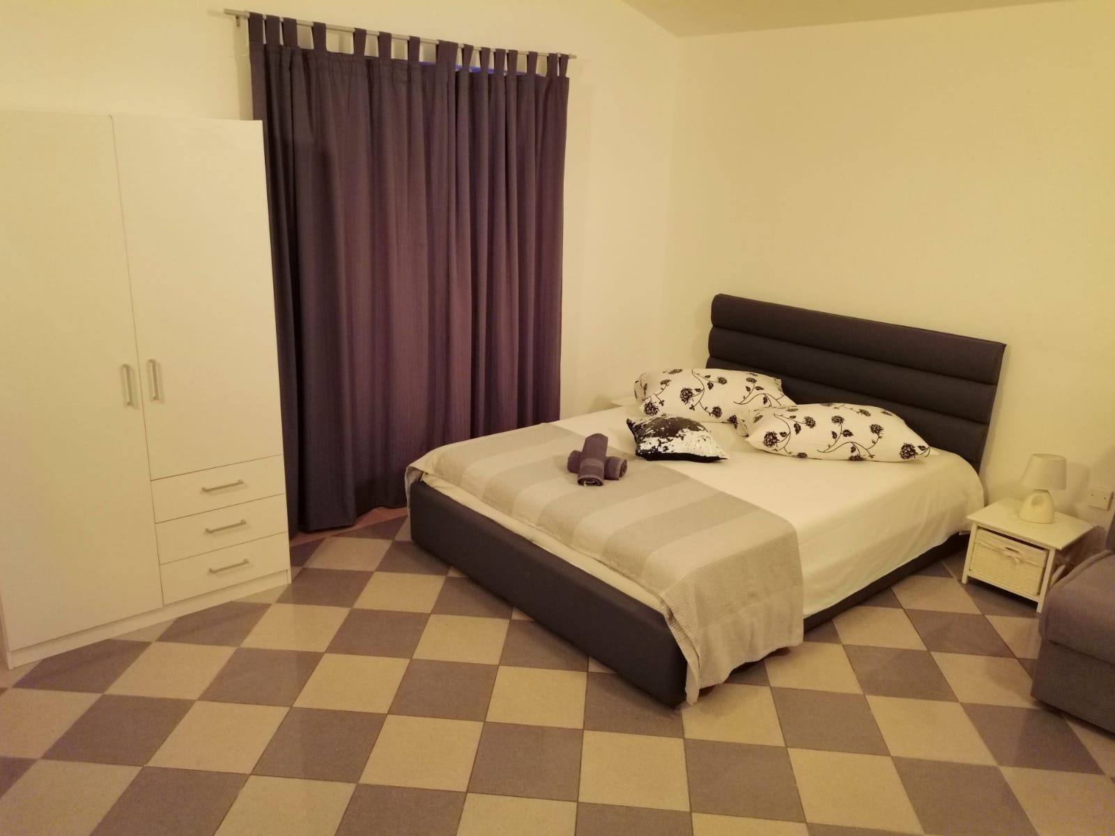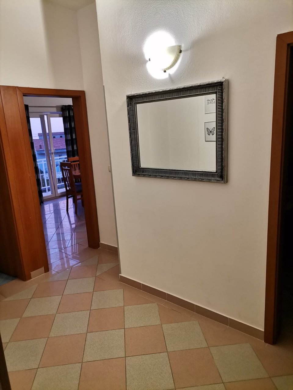 3 camere da letto, una camera da letto con letto matrimoniale, due camere da letto con due letti singoli, cucina, bagno con wc, balcone, aria condizionata, TV, WiFi, parcheggio