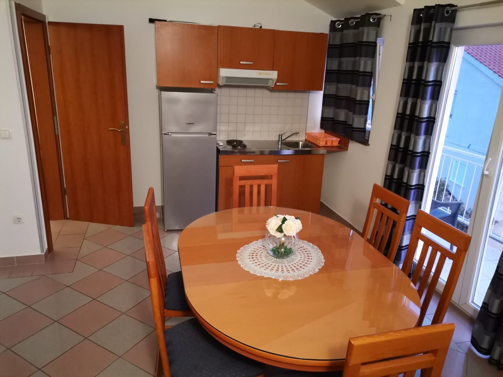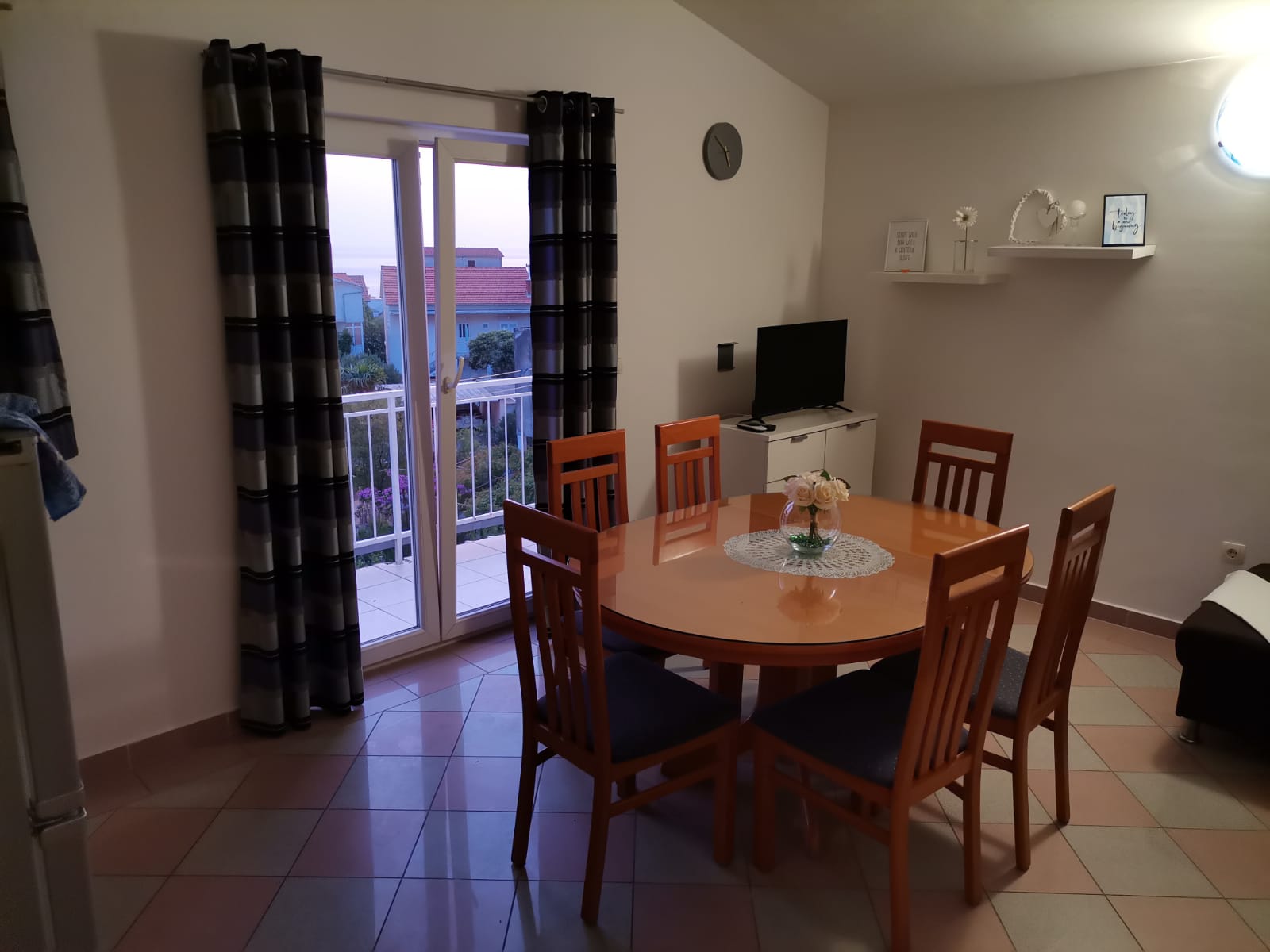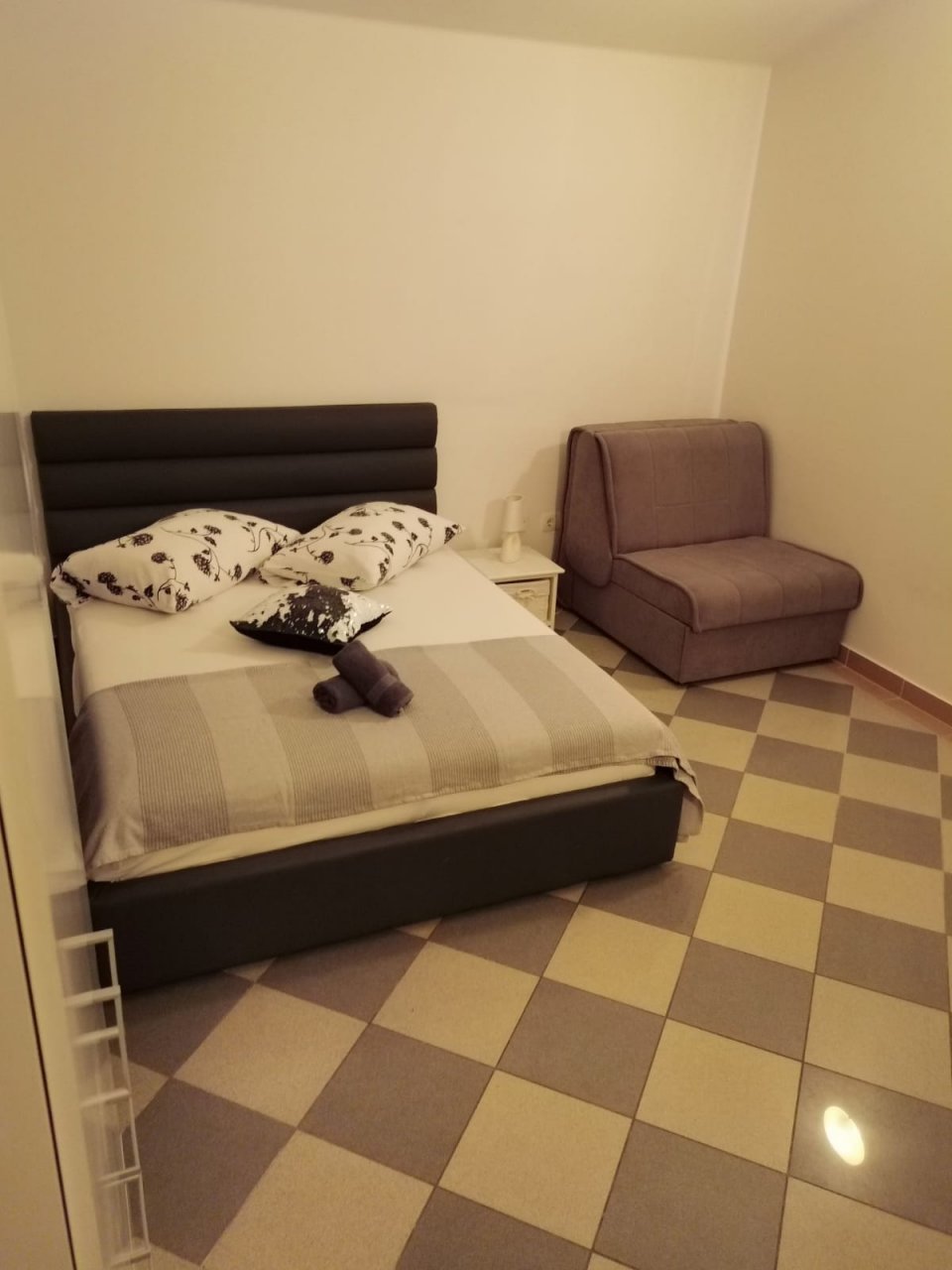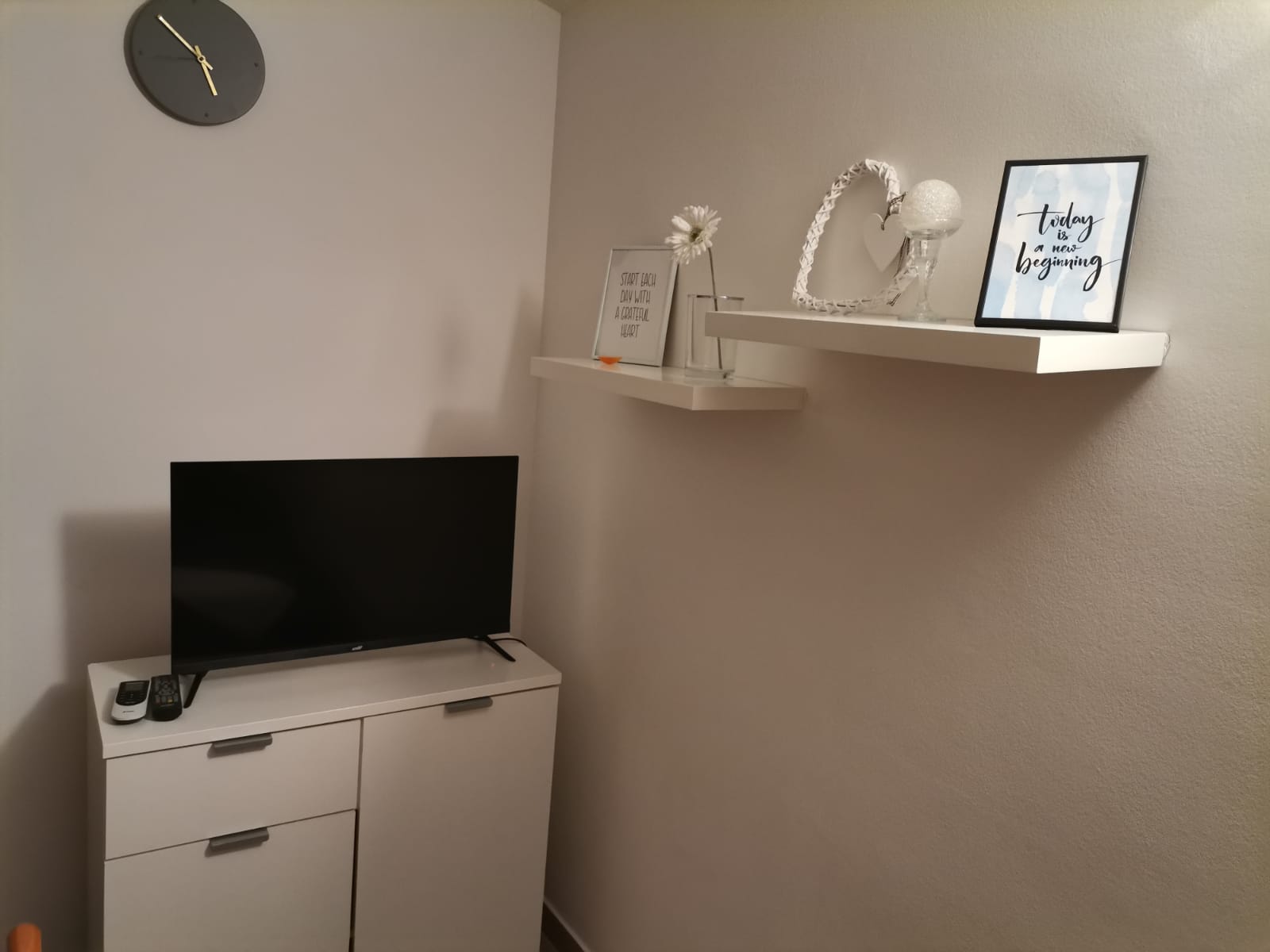 3 camere da letto, una camera da letto con letto matrimoniale, due camere da letto con due letti singoli, cucina, bagno con wc, balcone, aria condizionata, TV, WiFi, parcheggio