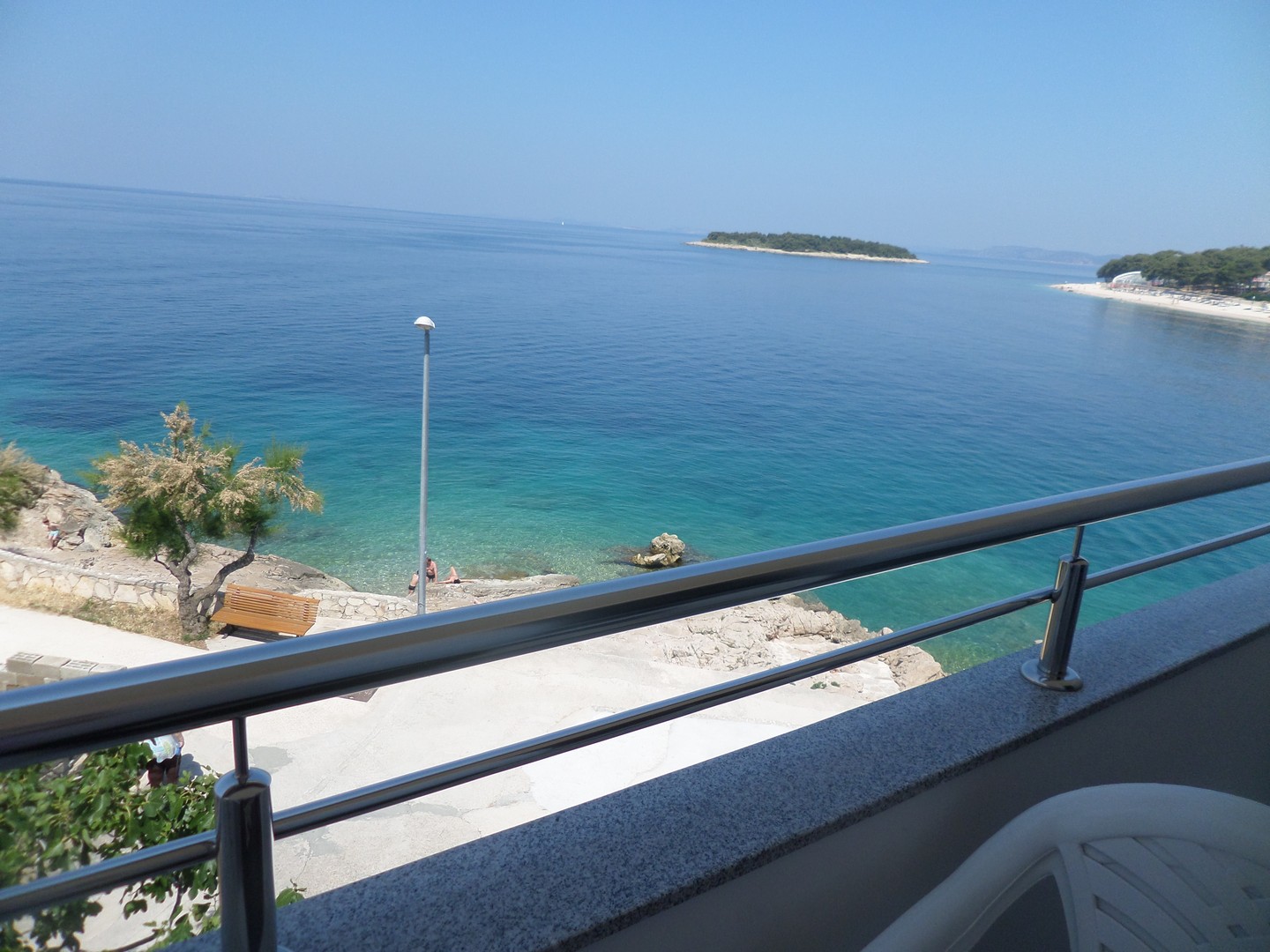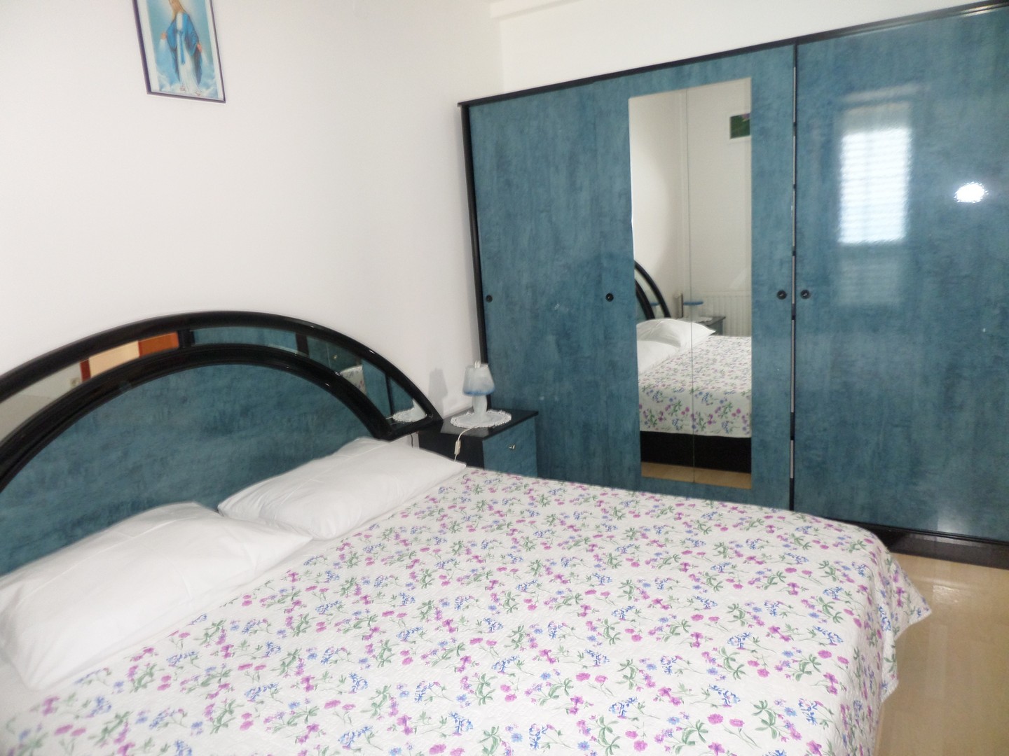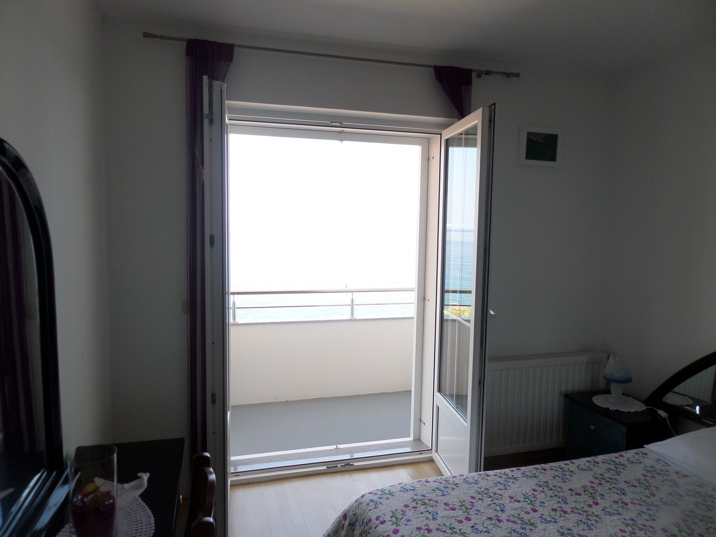 Camera da letto con letto matrimoniale, divano letto nel soggiorno per una persona (o due più piccoli), bagno, SAT-TV, cucina, balcone con vista mare e spiaggia, parcheggio, 10 m dal mare e dalla spiaggia, 2 ° piano