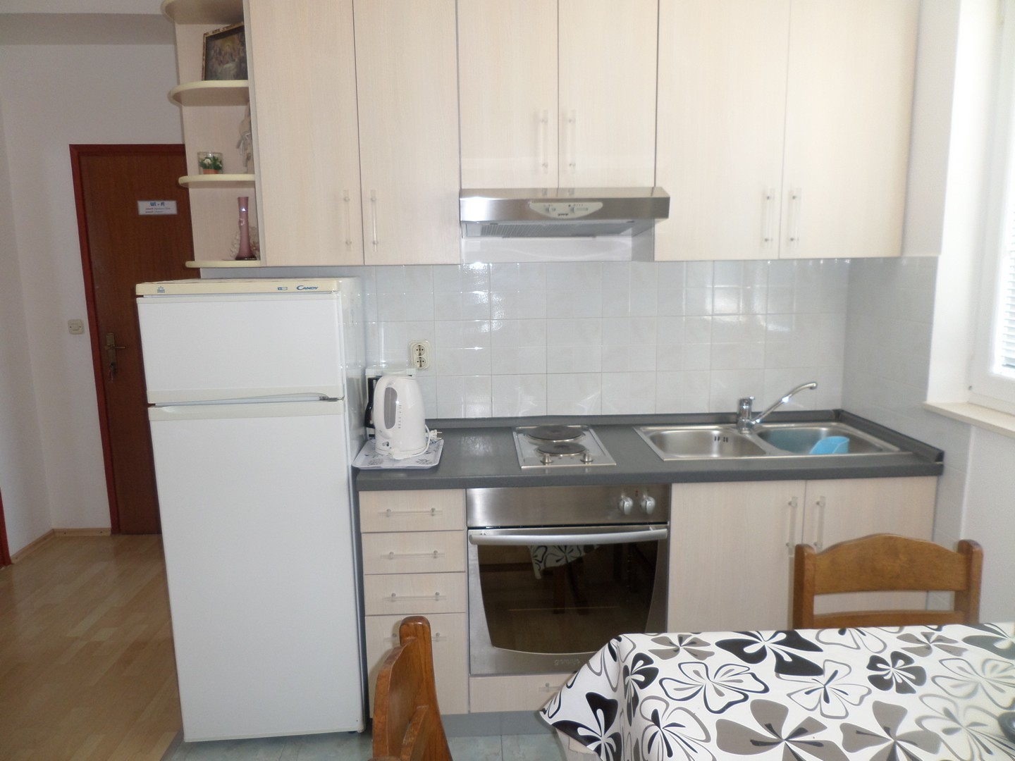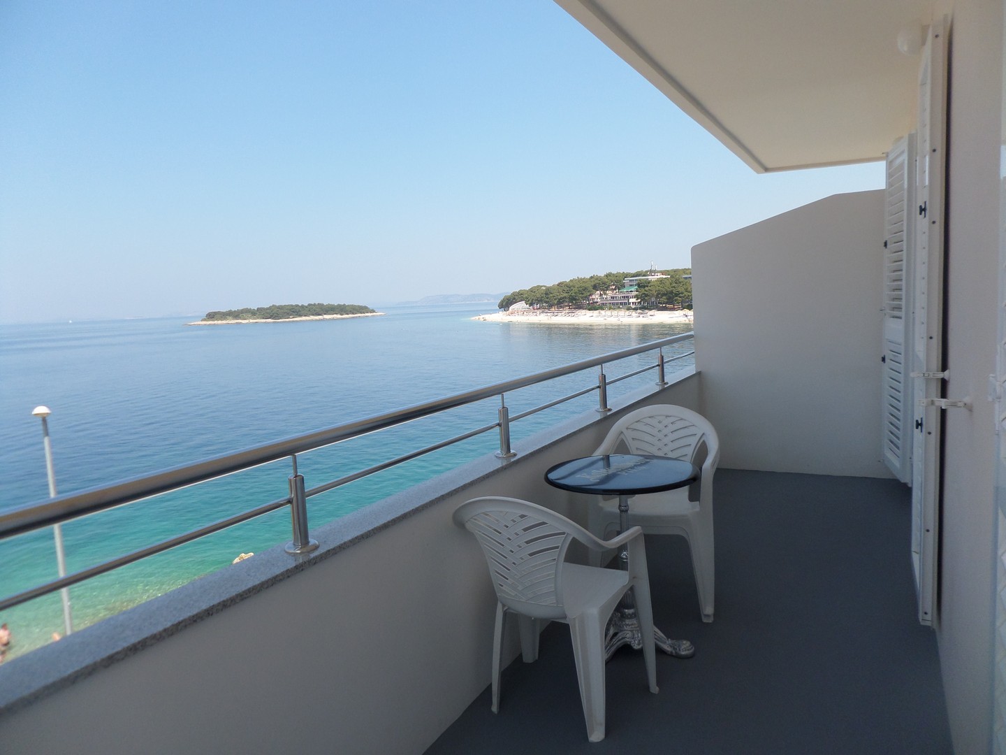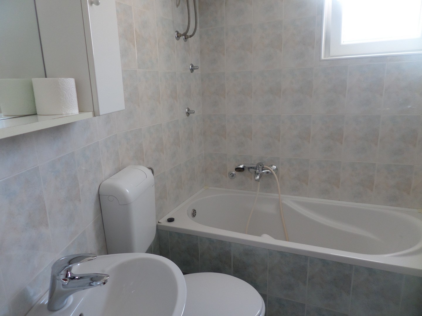 Camera da letto con letto matrimoniale, divano letto nel soggiorno per una persona (o due più piccoli), bagno, SAT-TV, cucina, balcone con vista mare e spiaggia, parcheggio, 10 m dal mare e dalla spiaggia, 2 ° piano