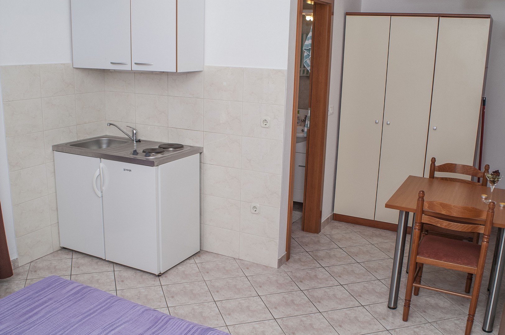 Monolocale di 25m² per due persone - ca. 250 metri dal mare e ca. 300 m dal centro di Primošten, camera, cucina, bagno con wc, balcone, aria condizionata, Sat-TV, Wi-Fi, parcheggio