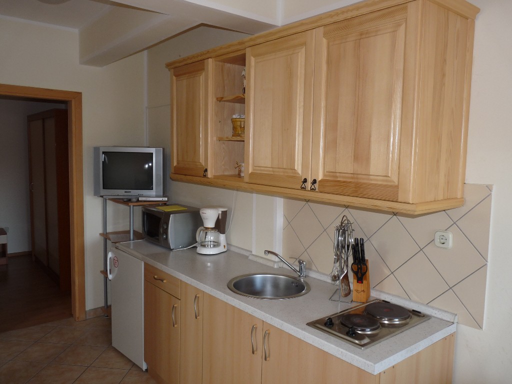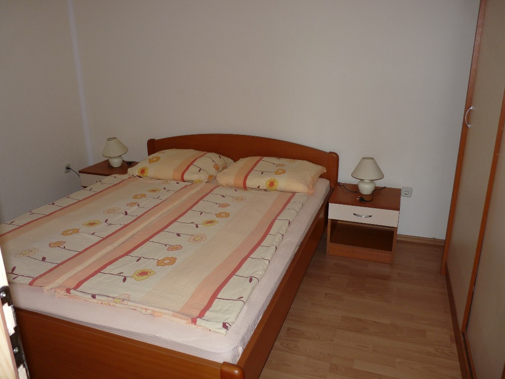 Sypialnia z podwójnym łóżkiem, kuchnia z jadalnią i salonem z rozkładaną sofą, łazienka z WC, balkon, klimatyzacja, telewizor, bezprzewodowy internet, grill na świeżym powietrzu, parking