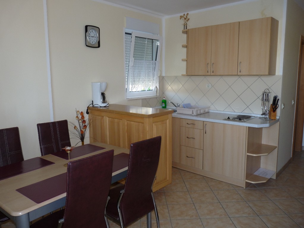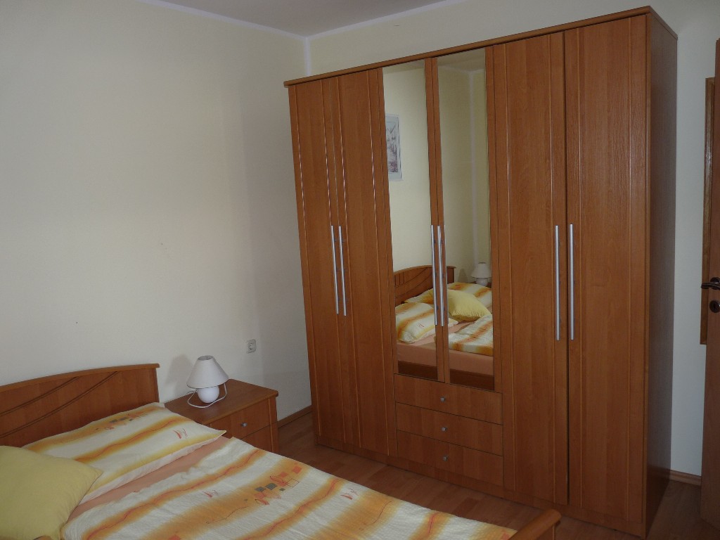 Sypialnia z podwójnym łóżkiem, kuchnia z jadalnią i salonem z rozkładaną sofą, łazienka z WC, balkon, klimatyzacja, telewizor, bezprzewodowy internet, grill na świeżym powietrzu, parking