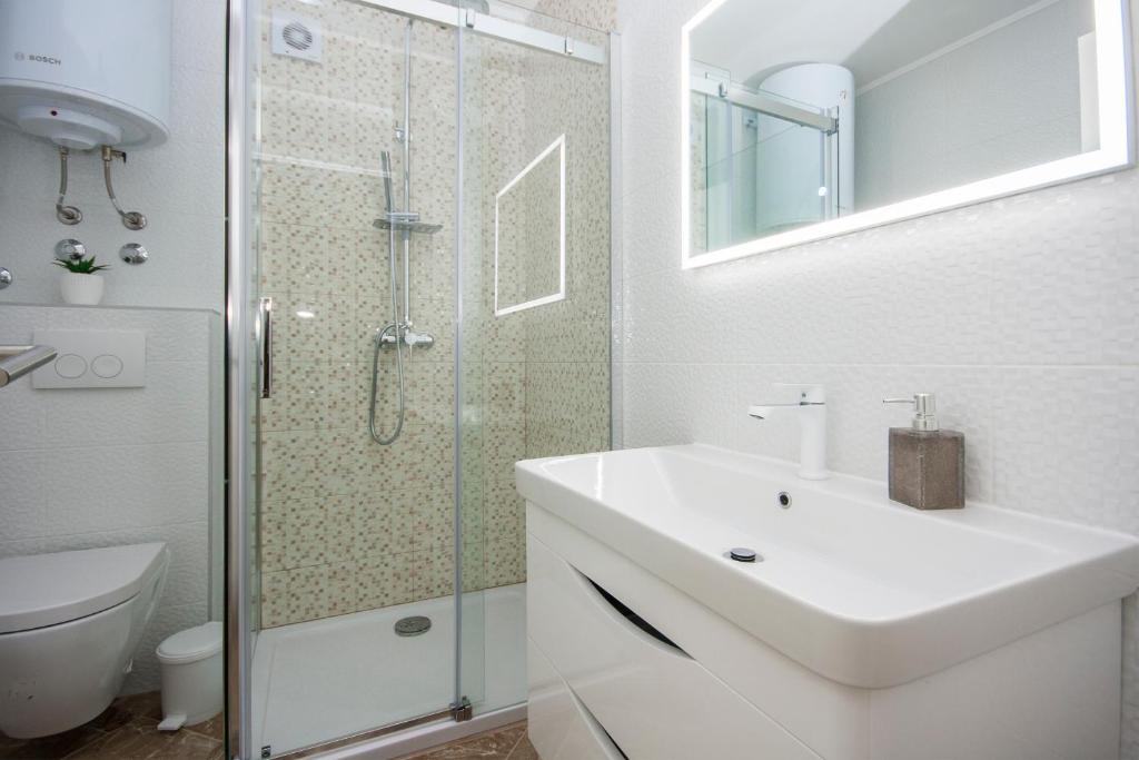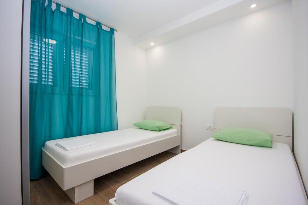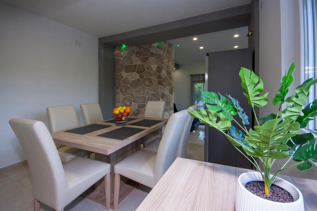 Apartament składa się z 3 sypialni z podwójnym łóżkiem, salonu z rozkładaną sofą, kuchni z jadalnią, 2X łazienki z prysznicem, przestronnego tarasu, klimatyzacji, TV, WiFi, miejsca parkingowego. Idealny dla osób, które chcą spędzić wakacje z dala od hałasu i tłumów, w pobliżu Primosten.