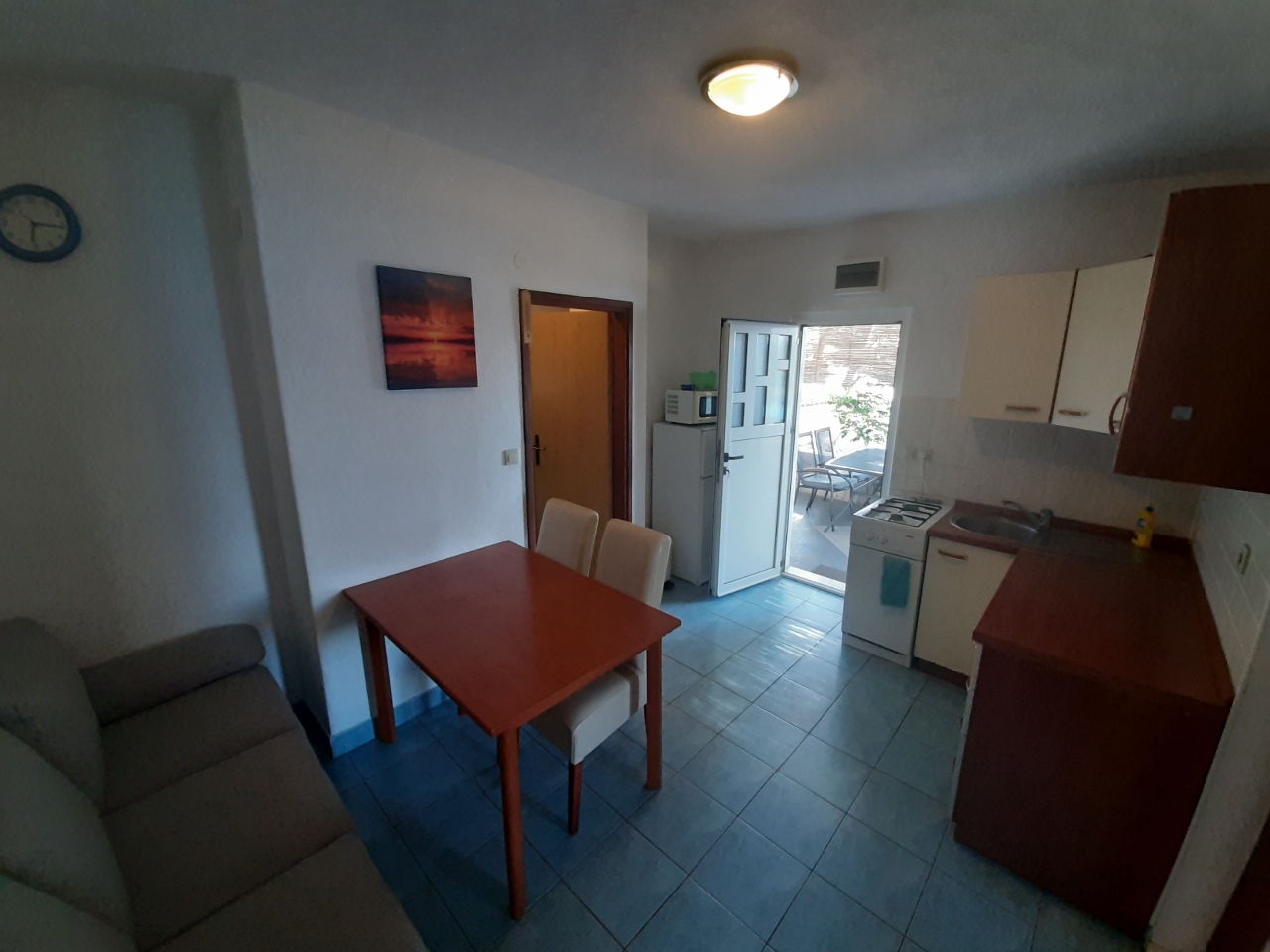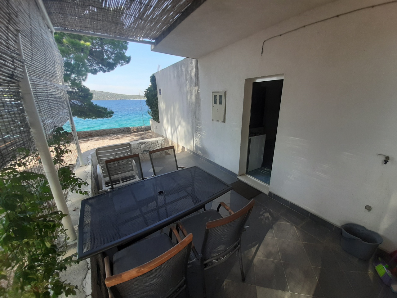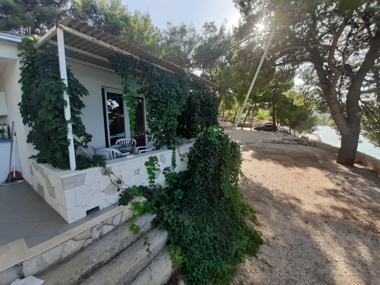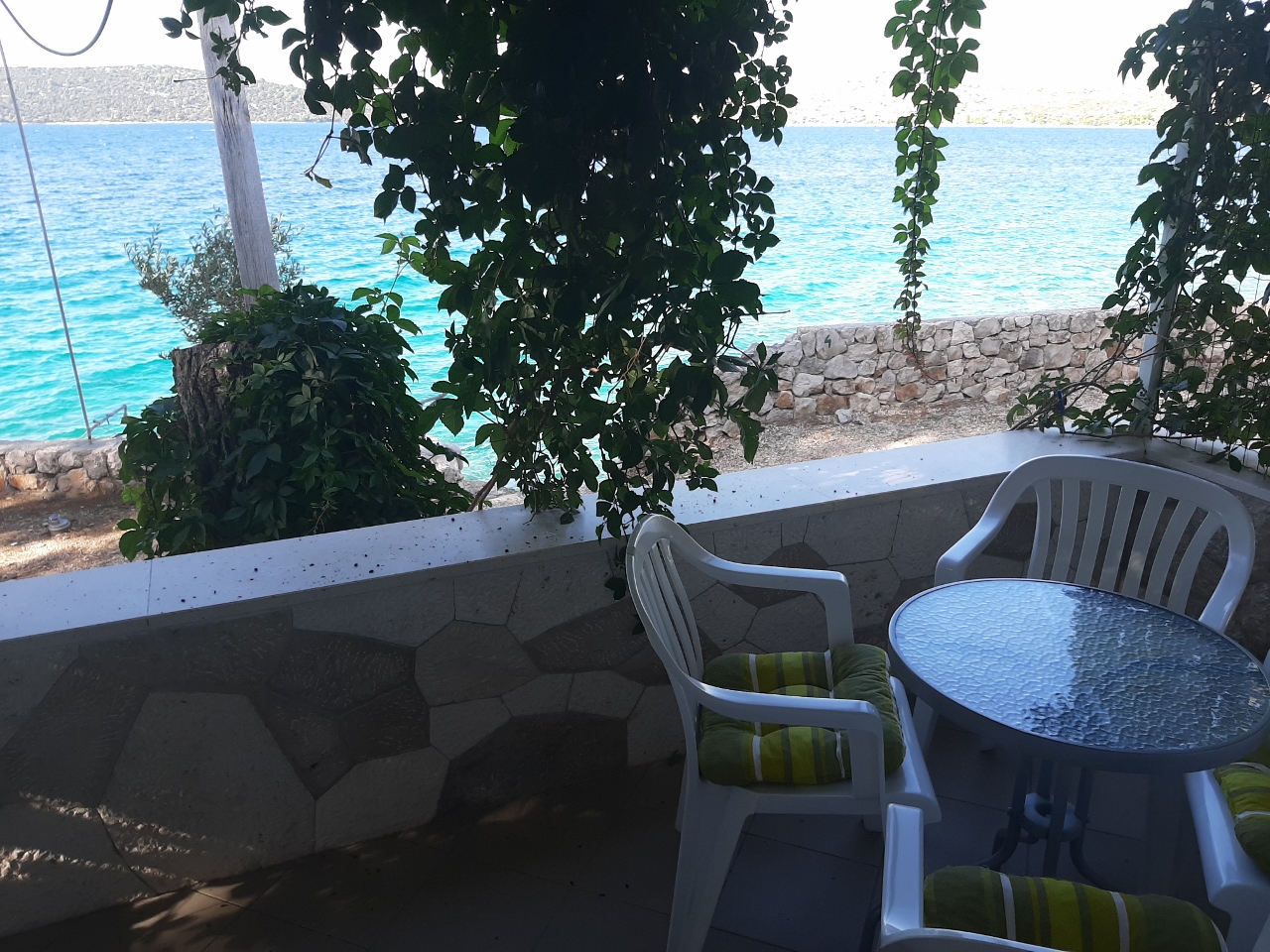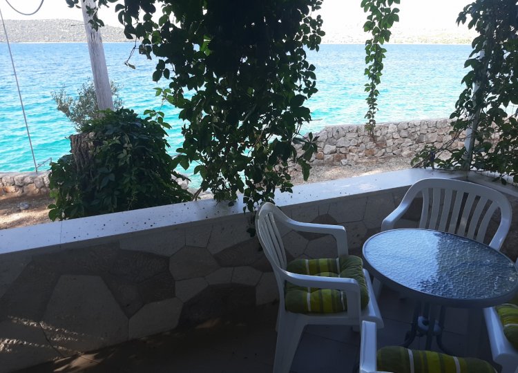 Pierwszy rząd do morza, otoczony lasem sosnowym w kamp Tomas, Sparadici.
