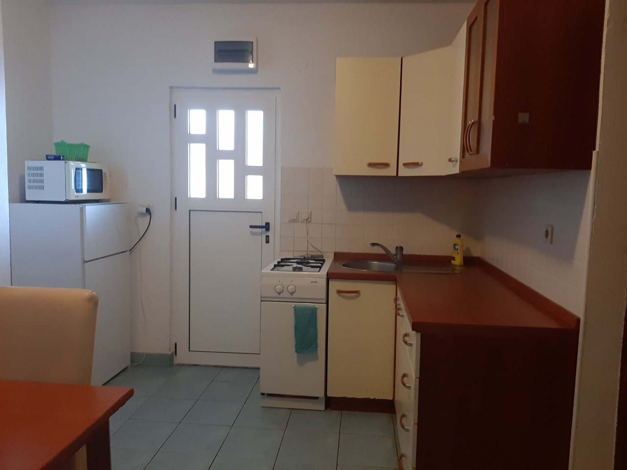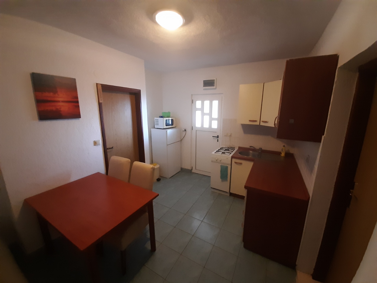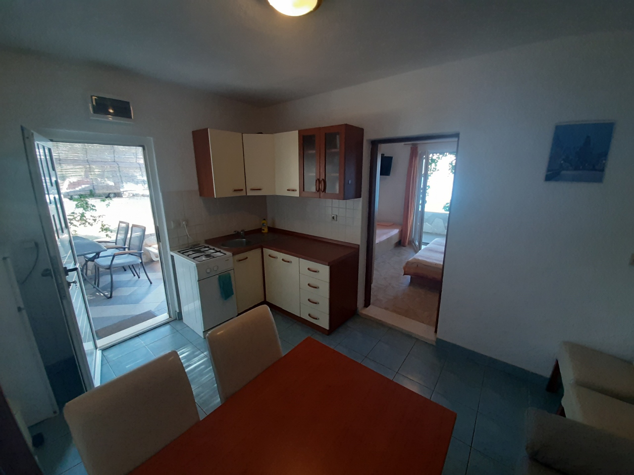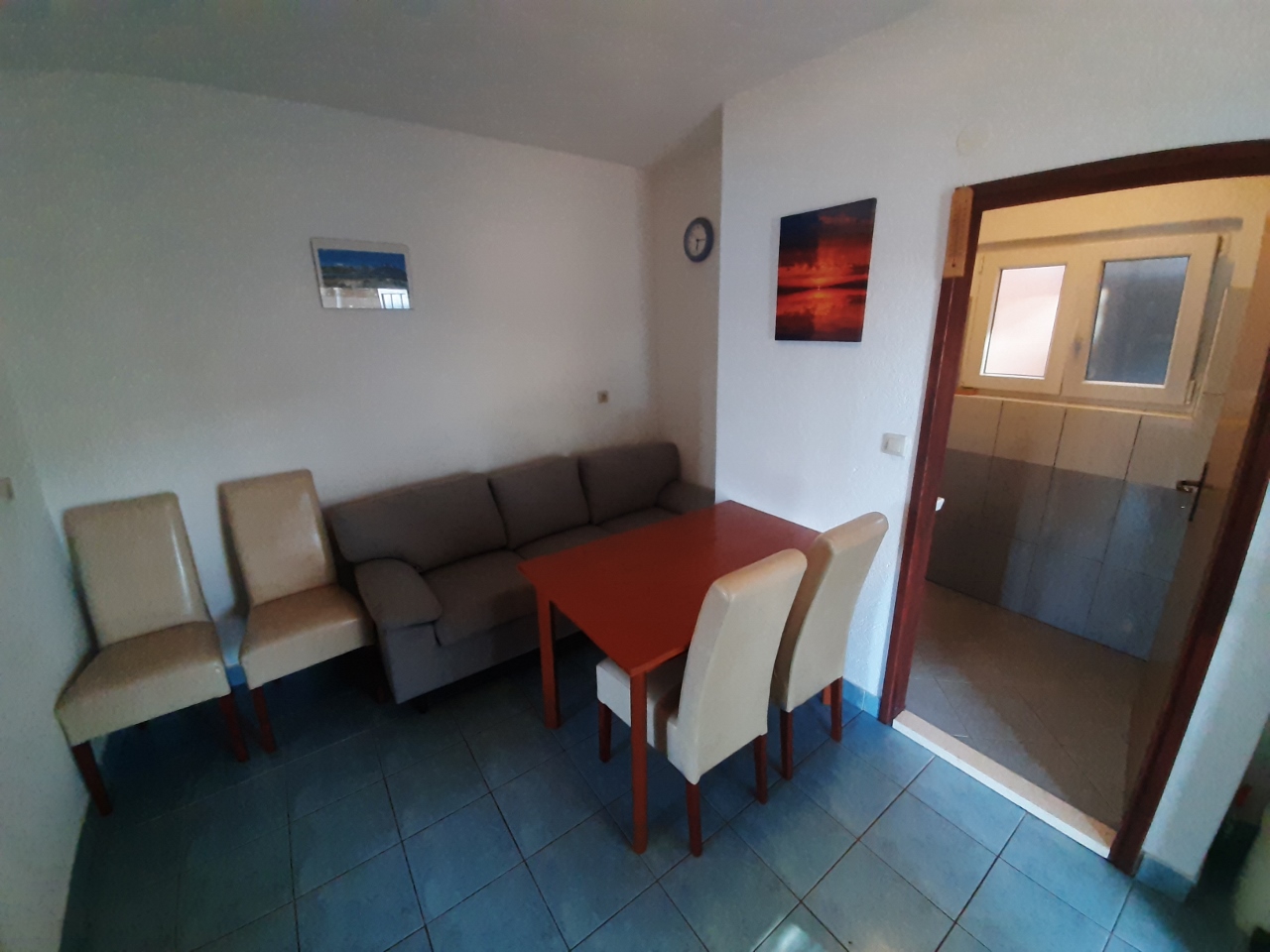 Pierwszy rząd do morza, otoczony lasem sosnowym w kamp Tomas, Sparadici.